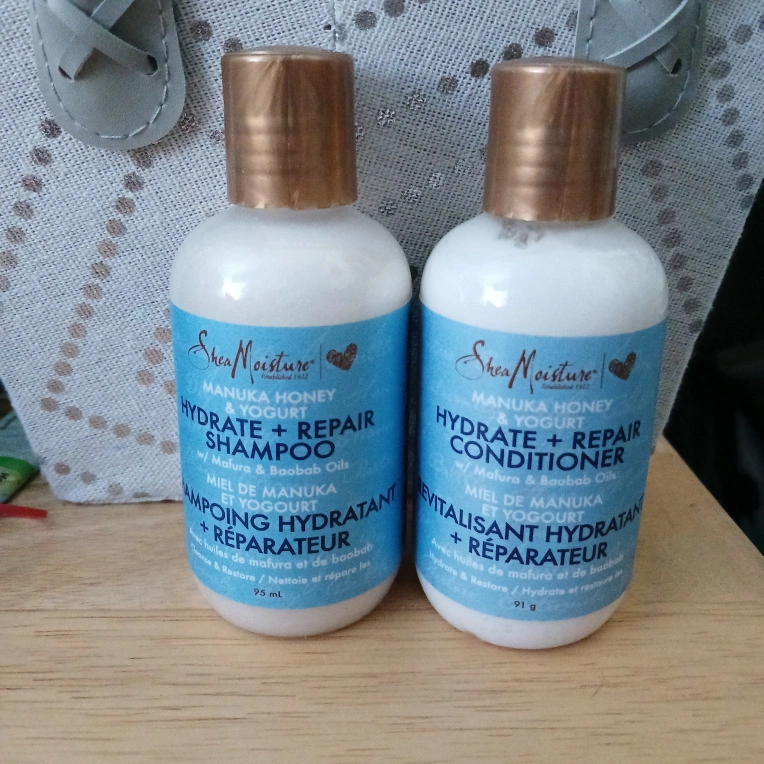 Travel-sized shampoo and conditioner. Manuka honey and yogurt. Hydrates and repairs. Mafura and baobab oils. Tried once. Smoke-Free home! PICK UP ONLY AT KEELE AND FINCH