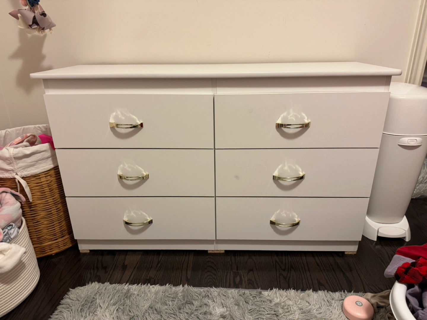 Great condition used in our nursery room for baby. Gold handles and 6 drawers.