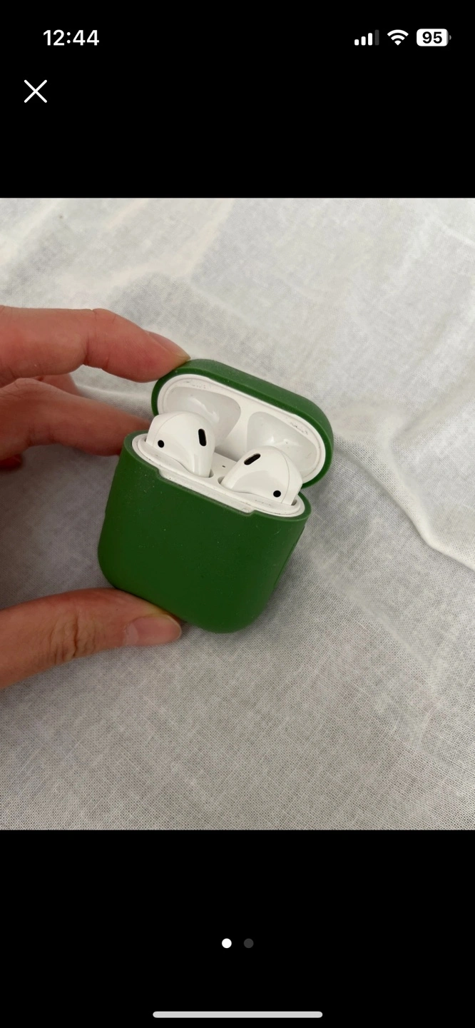 320If the post is up, it is available, so please don’t ask if it is available. Apple airpod 2nd generation with a green silicone case. Gently used. The right side dies a bit faster than the left (after about 1 hour of calls, it dies. Longer if you’re only listening).