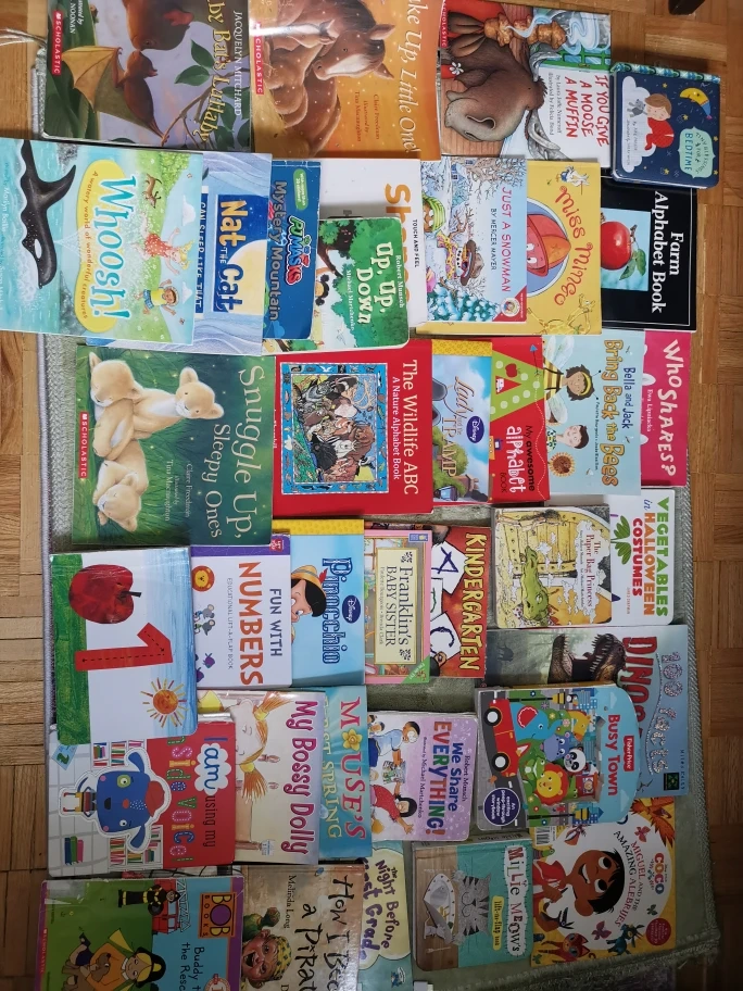 Large collection of children's books. Various titles and authors. Great for toddlers and preschoolers. Includes alphabet books, counting books, and storybooks. Perfect for home or classroom.