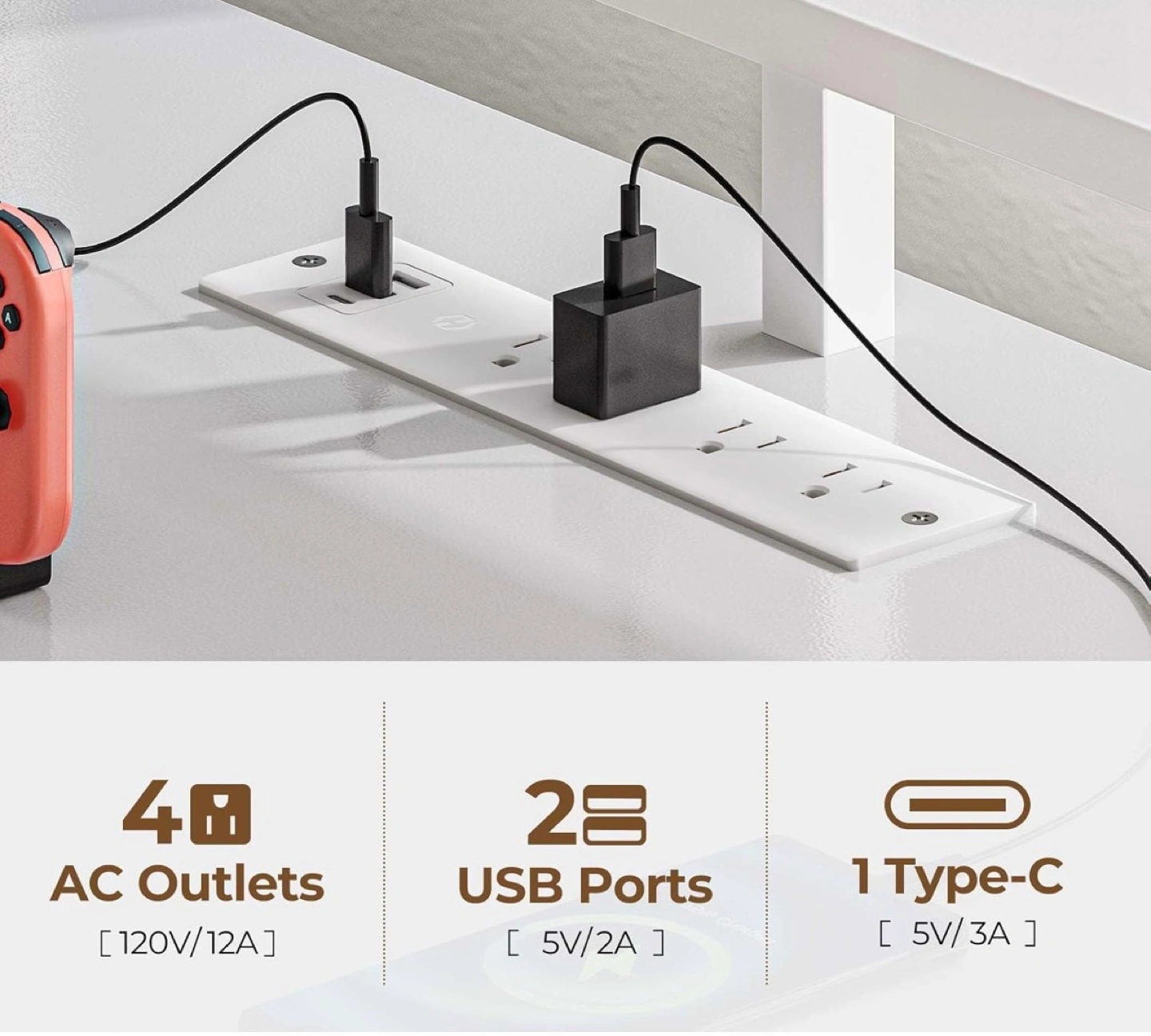 L-Shaped Gaming Desk with RGB LED Lights and Built-in Outlets