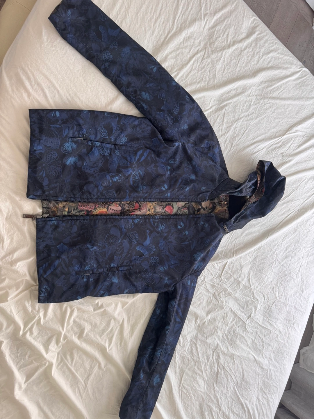 Men's hooded jacket. Size 50. Butterfly print. Made in Italy. Zip closure. Long sleeves. both size wear.