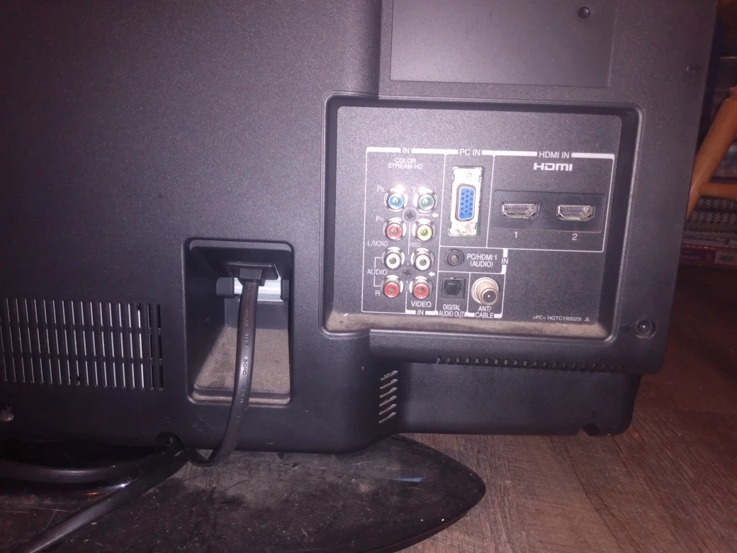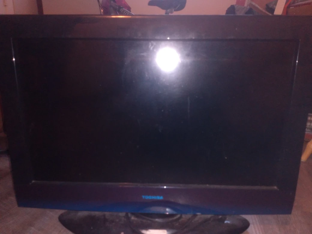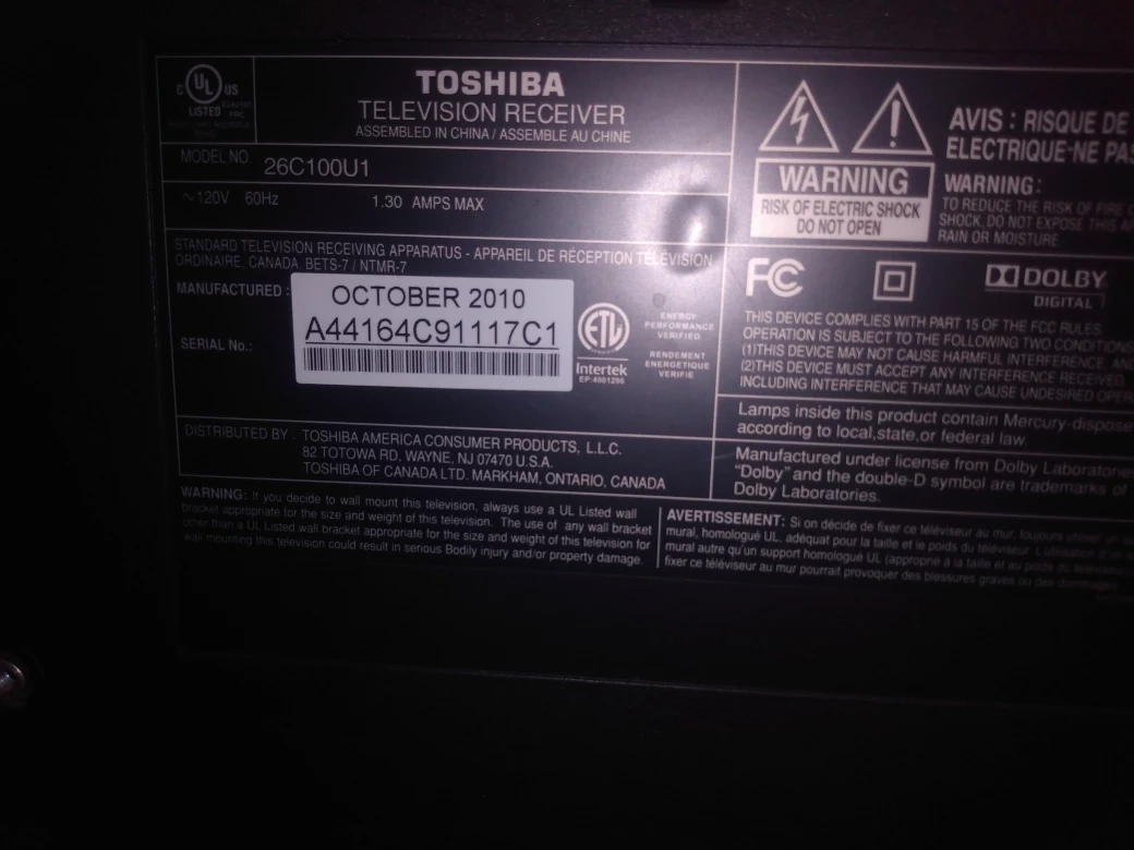 Older Toshiba television. Manufactured October 2010. Includes multiple input options: HDMI, PC, component video, composite video, and more. Power cable included. Model number 26C100U.
