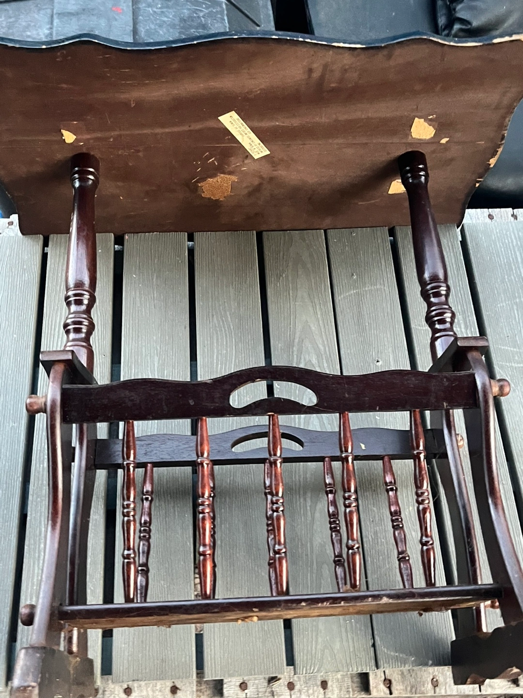 Dark brown wooden magazine rack.