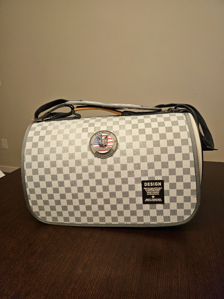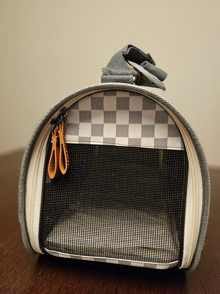 Buy & SellPremium Brands Pet Carrier - Grey and White CheckeredPremium Brands Pet Carrier - Grey and White Checkered$20Pet carrier. Grey and white checkered pattern. Features a mesh section. Includes a shoulder strap and top handle. Excellent condition. ConditionLike newWHERE TO MEET3470 Highland drive, CoquitlamView MapSELLERverifiedMark7Burke Mountain872 reviews1 chats·3 favorites·87 views