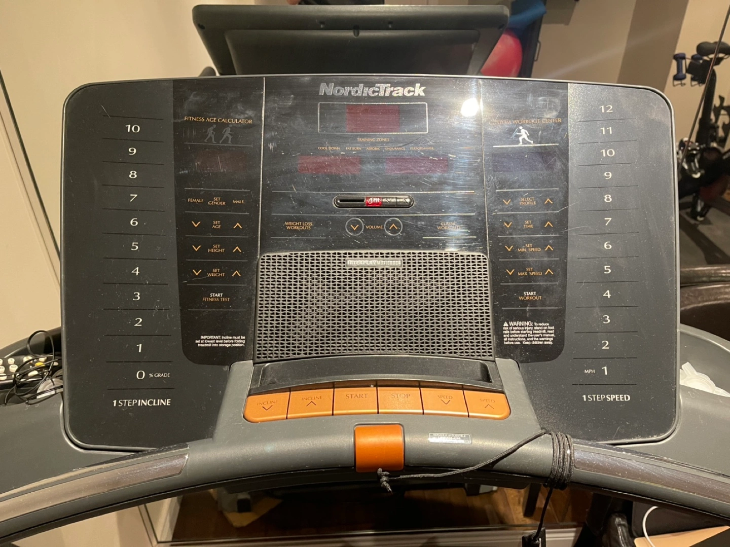 NordicTrack A2350 treadmill for sale. Features DuraSoft II adjustable cushioning and a space-saver design. Model A2350. Good condition. Includes fitness ace calculator.