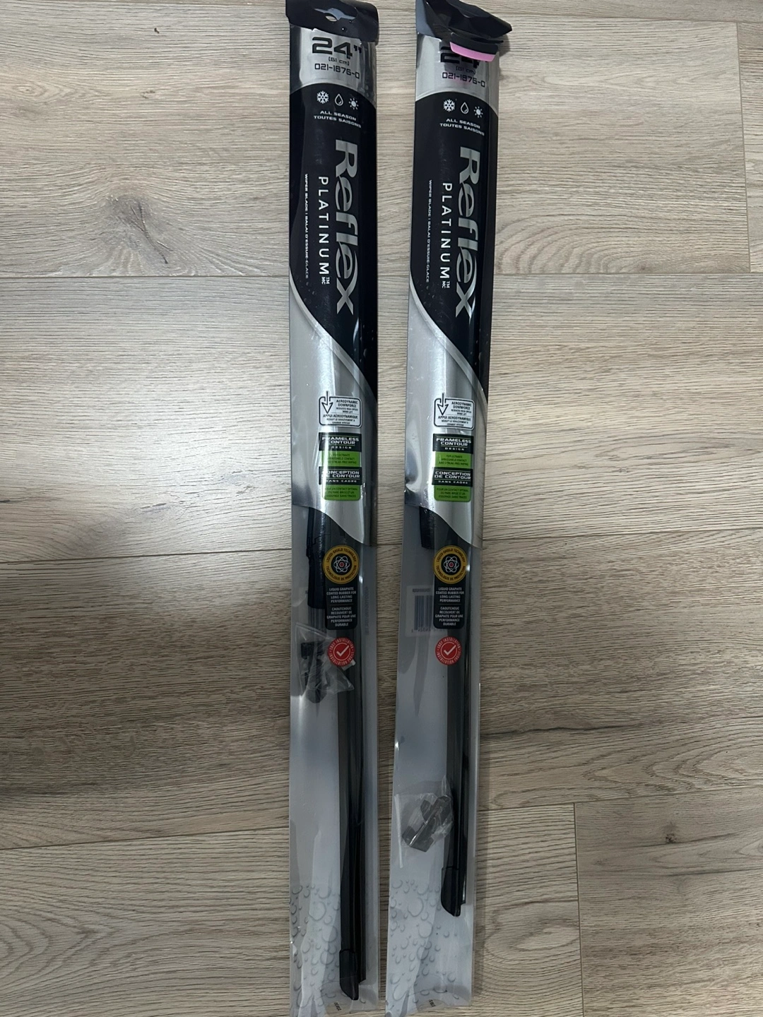 New in package. 24 inch frameless wiper blades. All-season. Liquid graphite coating for long lasting performance.