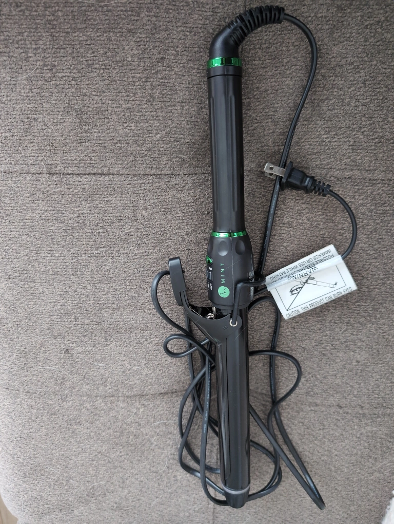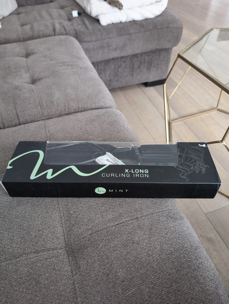Like new in box Mint X-Long curling iron. Black with green accents. Long barrel. Includes a clip. Sells for $120 online.