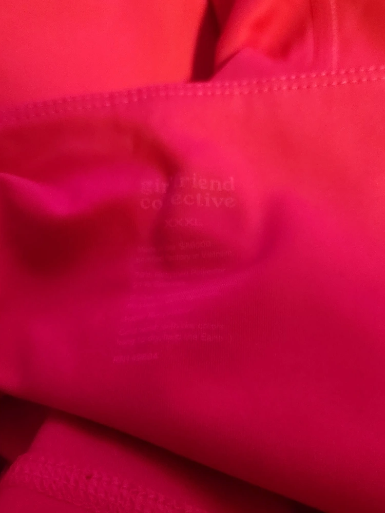 Girlfriend Collective high neck sports bra and bike shorts set. Bright pink colour. Size XXXL leggings and XXXXL Sports Bra. Excellent condition.