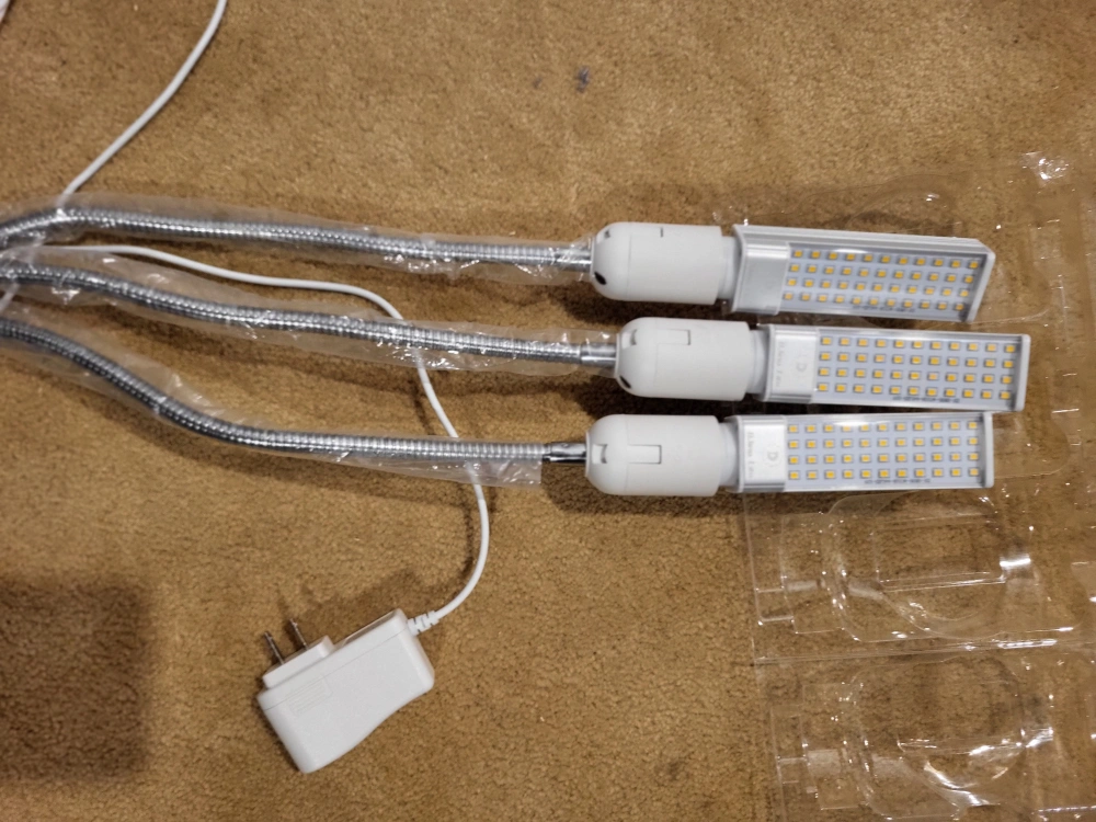 Grow light with auto ON/OFF. Has 3 modes and a timer and 3 flexible gooseneck heads. Includes power adapter and clamp. Perfect for starting your garden. For indoor use.