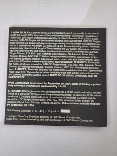 Sven Gali Tie Dyed Skies Labatt Draft 1994 CD Single