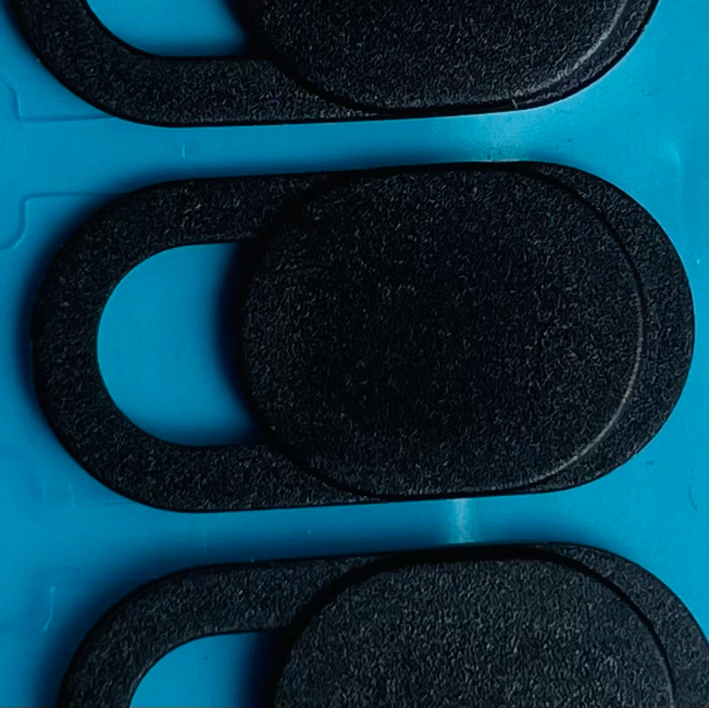 Black webcam covers. Durable plastic. Easy to apply. Protects privacy.