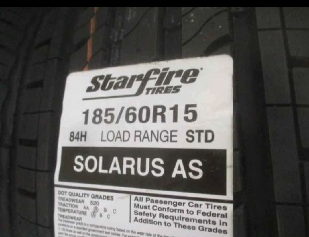 Set of three new Starfire Solaraus AS tires. Size 185/60R15 84H. Standard load range. Excellent condition, never used.