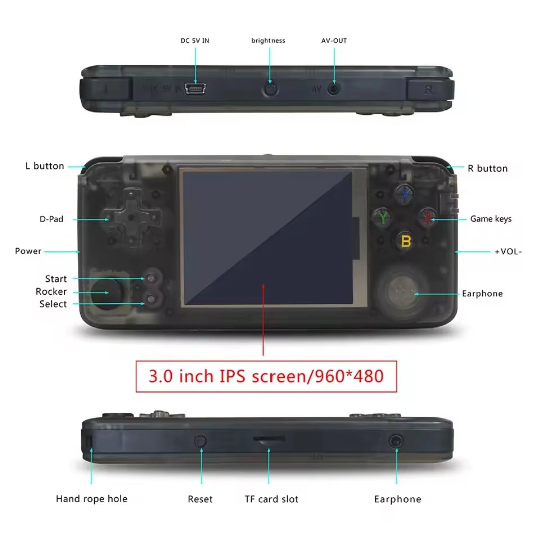 Anbernic RS97 Retro Handheld Game Console - Transparent Black