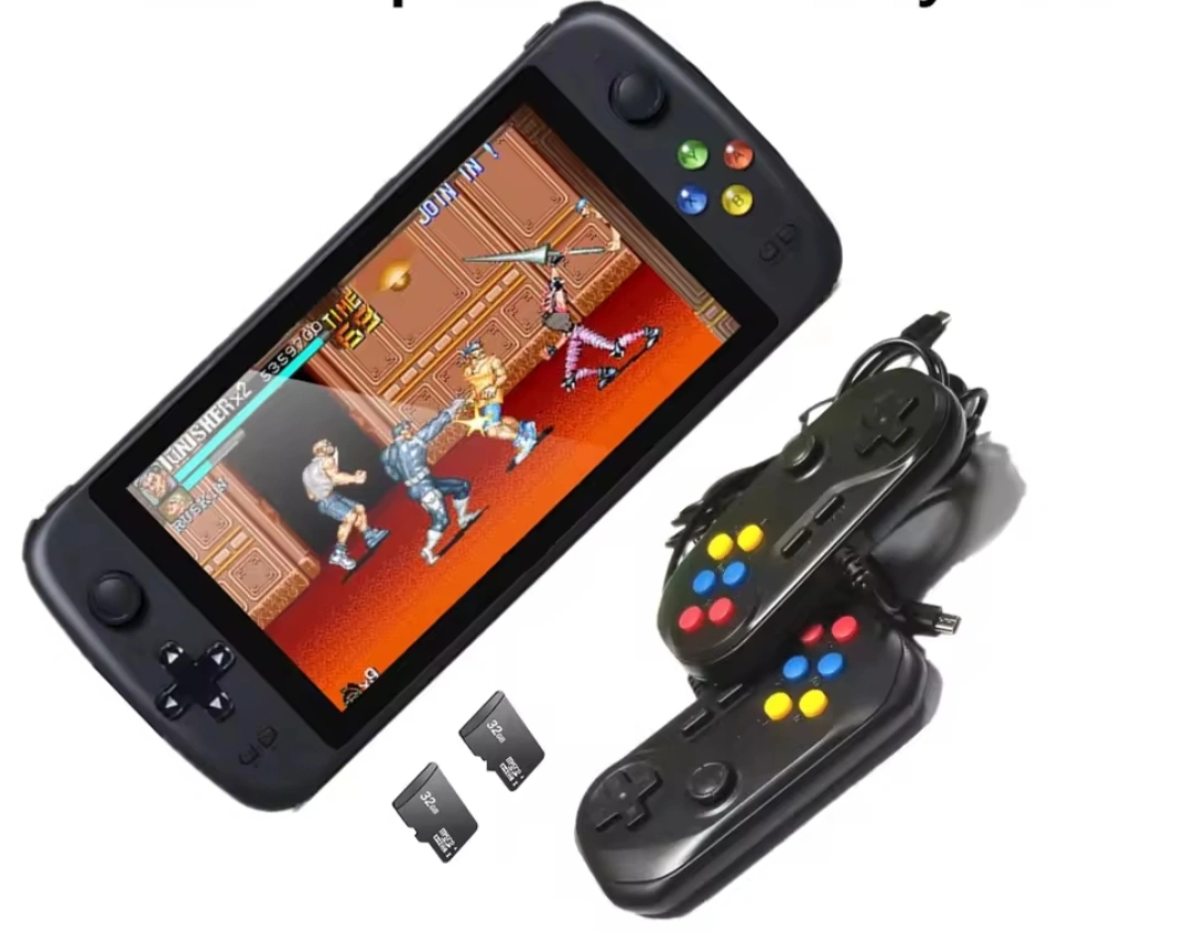 PS7000 7 inch HD Retro Handheld Game Console with 2 Controllers - Black / 128GB
