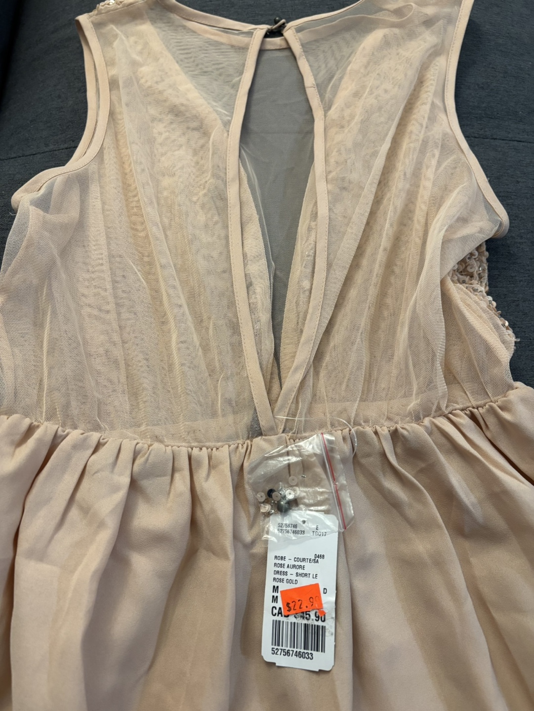 Sequined Champagne-Colored Mini Dress, Size M