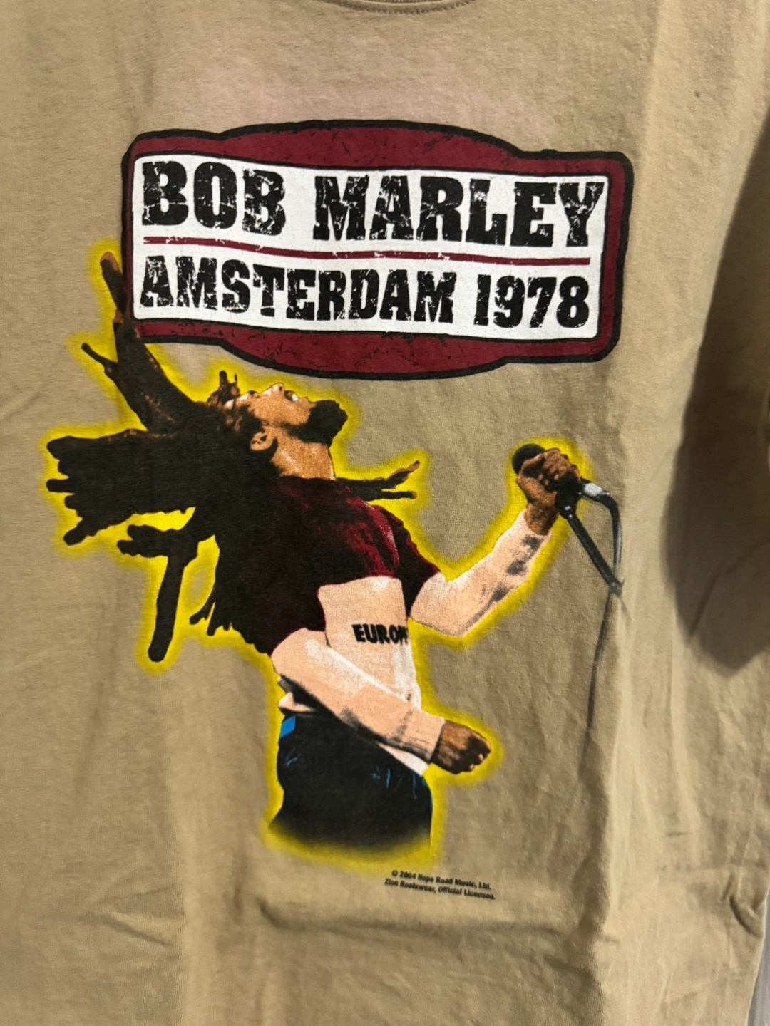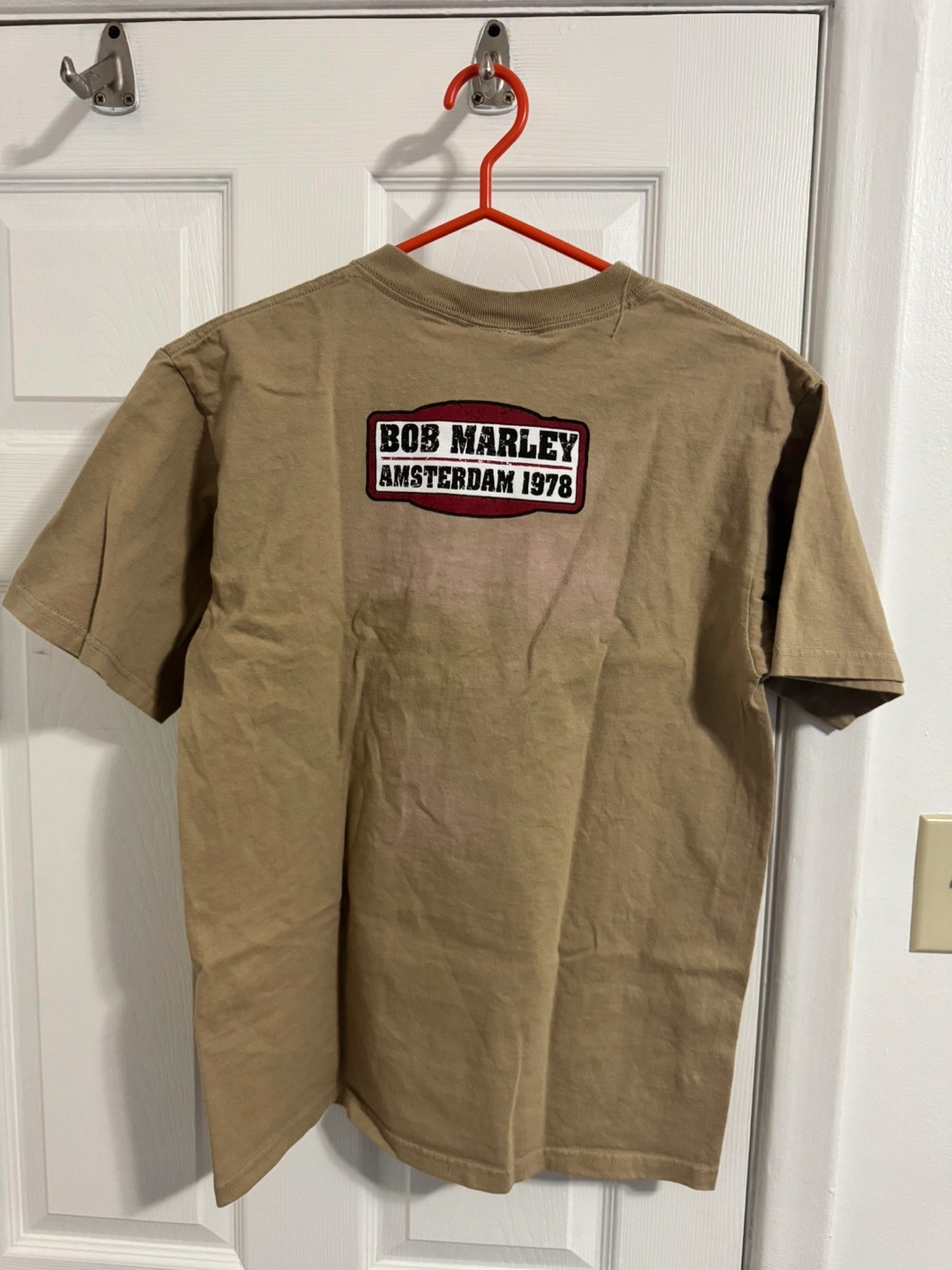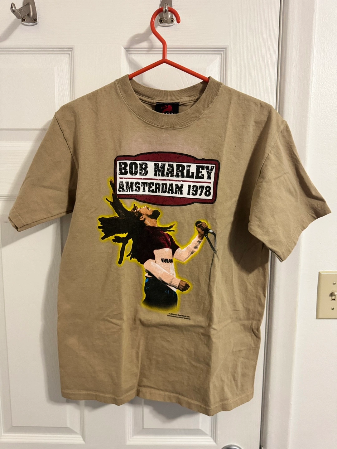 360Men's size medium tan t-shirt. Features a graphic of Bob Marley performing live in Amsterdam in 1978. Officially licensed Zion Rootswear tee. Vintage 2004 Bob Marley Amsterdam 1978 (Medium) Condition: good condition (pink stain issue) Price: 35 cad cash or best offer Location: 807 Brimley Road Scarborough (pick up location) Shipping available via canada post Meet up: Line 1 or Line 2 subway or downtown Please see my other listing. Happy Shopping!