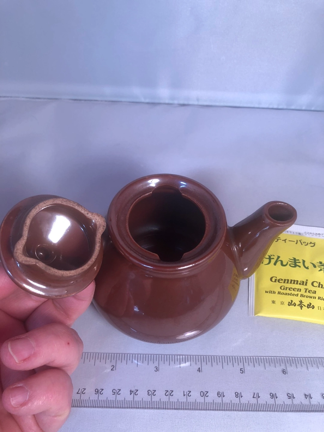 Unusual, very small vintage glazed teapot/théière made in Japan. Perfect for tasting special teas. Picture with Japanese teabag and ruler for size.