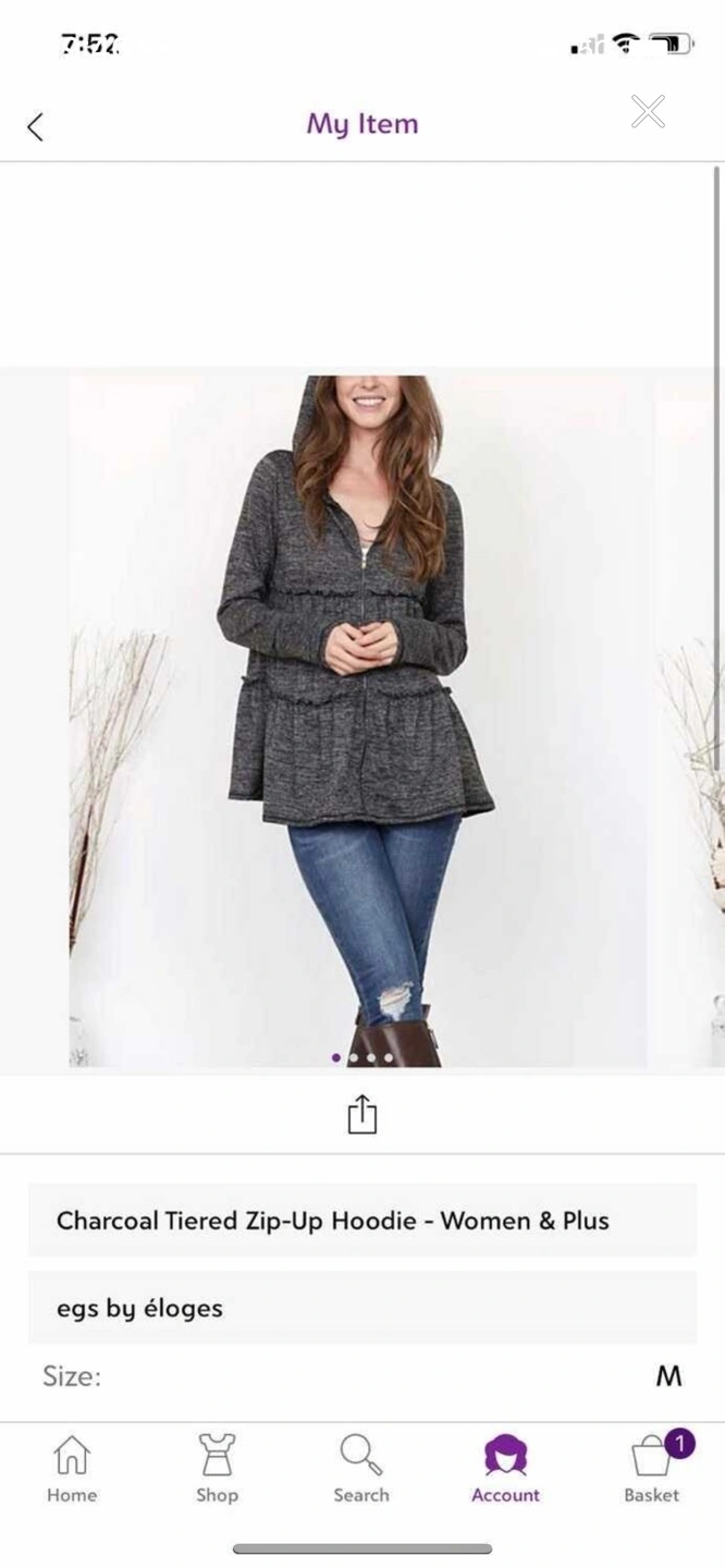 Women's plus size charcoal tiered zip-up hoodie. Long sleeves, medium size.