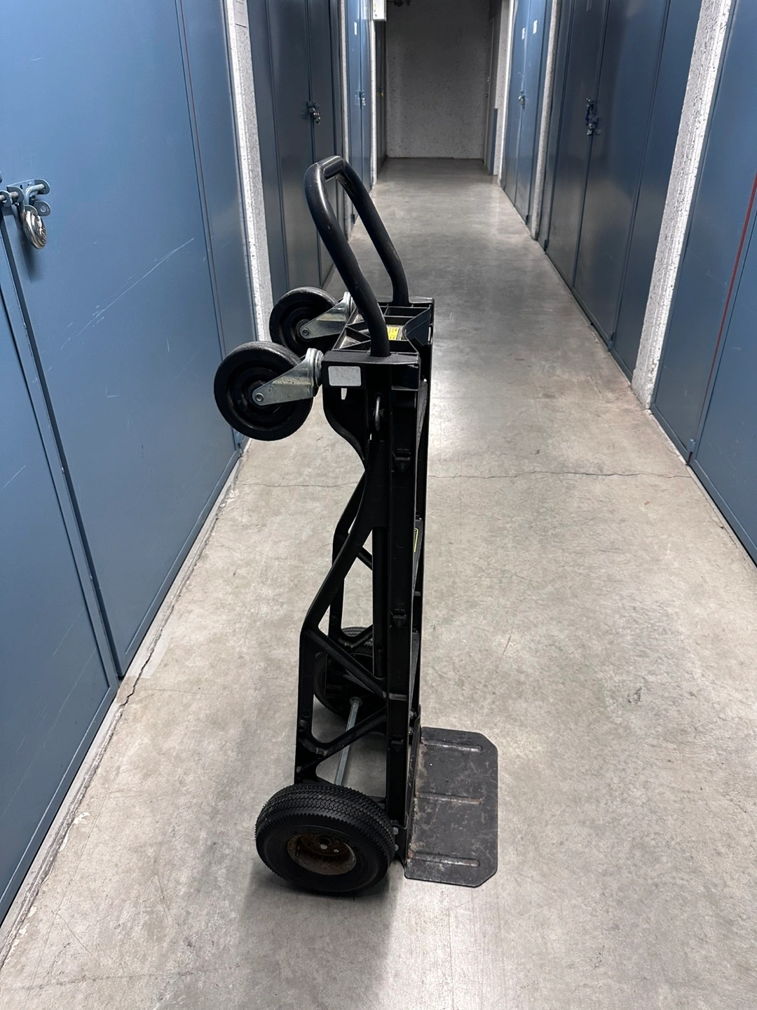 Durable steel frame. Two wheels and convertible to four wheels. 600 pound capacity. Great for moving heavy items and in great condition.