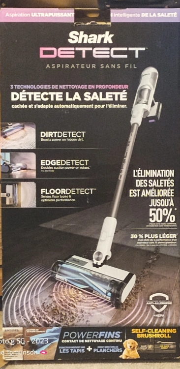 New Shark Detect cordless vacuum. Features DirtDetect, EdgeDetect, and FloorDetect technologies. Powerfins self-cleaning brushroll. 50% improved dirt removal. 30% lighter.