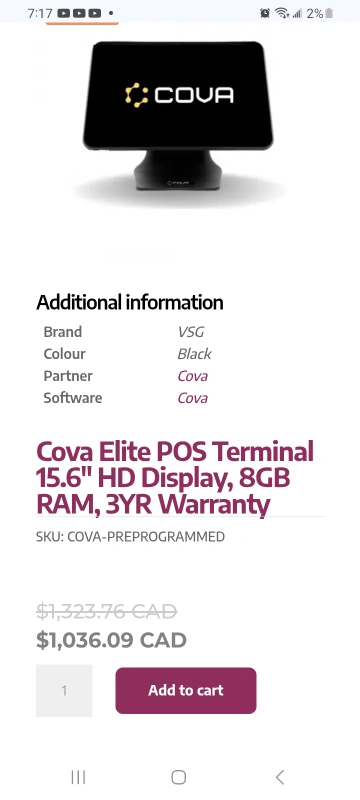 18Black Cova POS terminal. 15.6 inch HD display. 8GB RAM. pick up Lawrence West & Black Creek cash