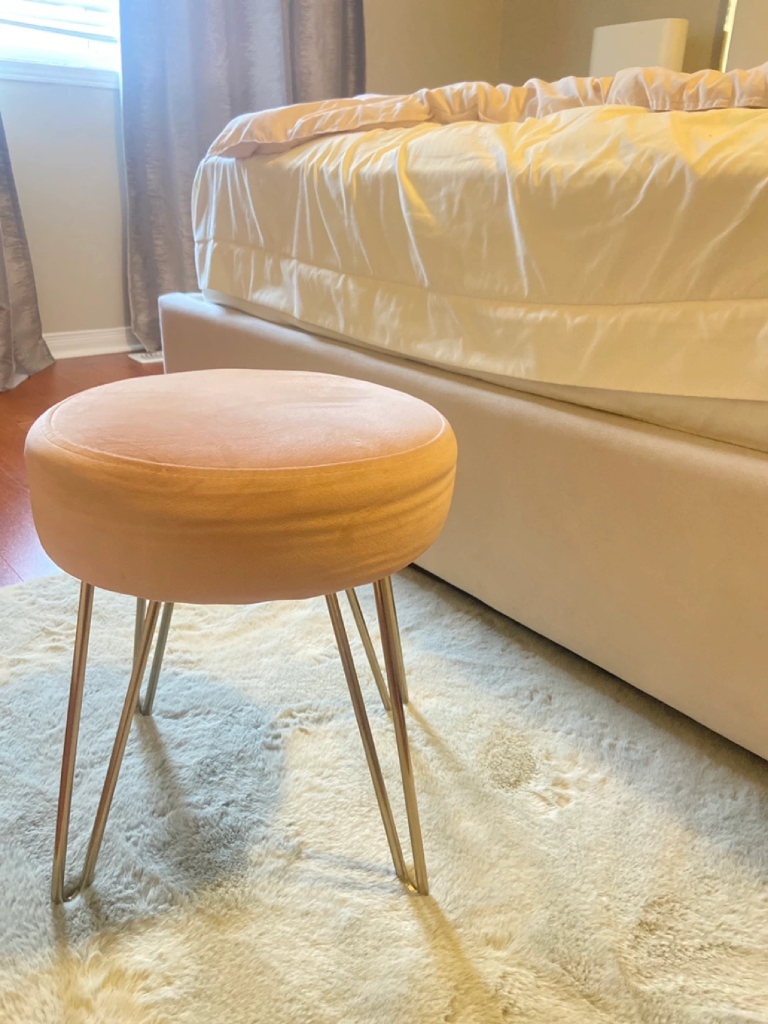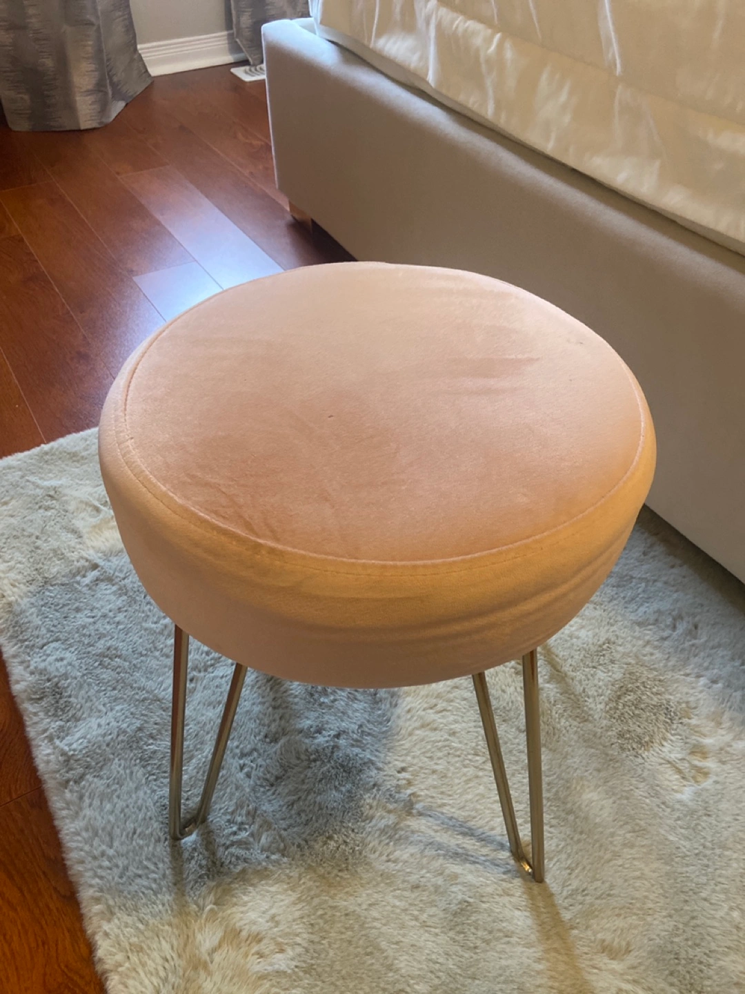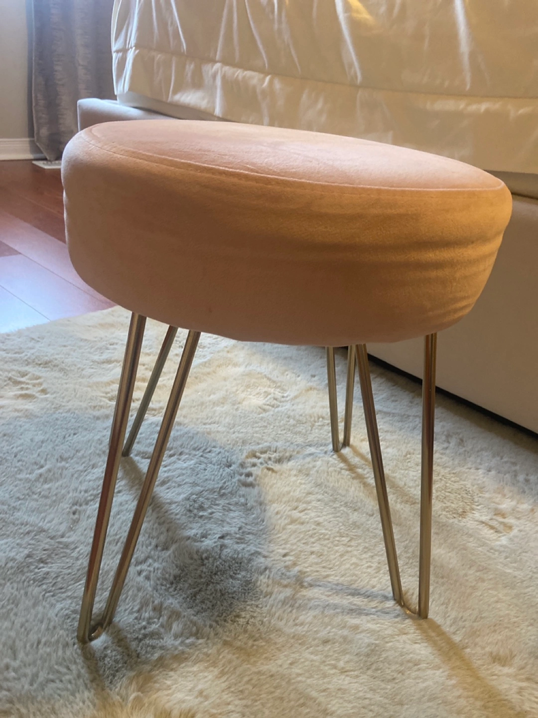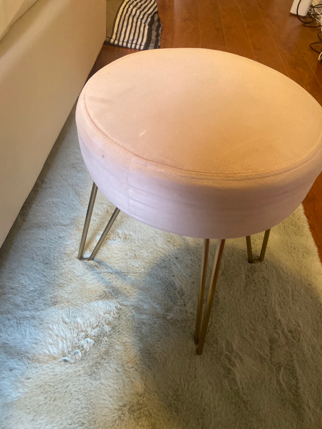 Buy & SellPink Velvet Round Stool with Gold LegsPink Velvet Round Stool with Gold Legs$30Adorable round blush pink velvet stool. Gold hairpin legs. Perfect for a bedroom or vanity.ConditionGoodWHERE TO MEETCheck LocationView MapSELLERJessicaBram E292 reviews0 chats·1 favorites·37 viewsSEND CHAT TO SELLERHi Jessica! I’m interested in your listing.Hi Jessica! I’m interested in your listing.Get the Karrot app to chatSign In to chat