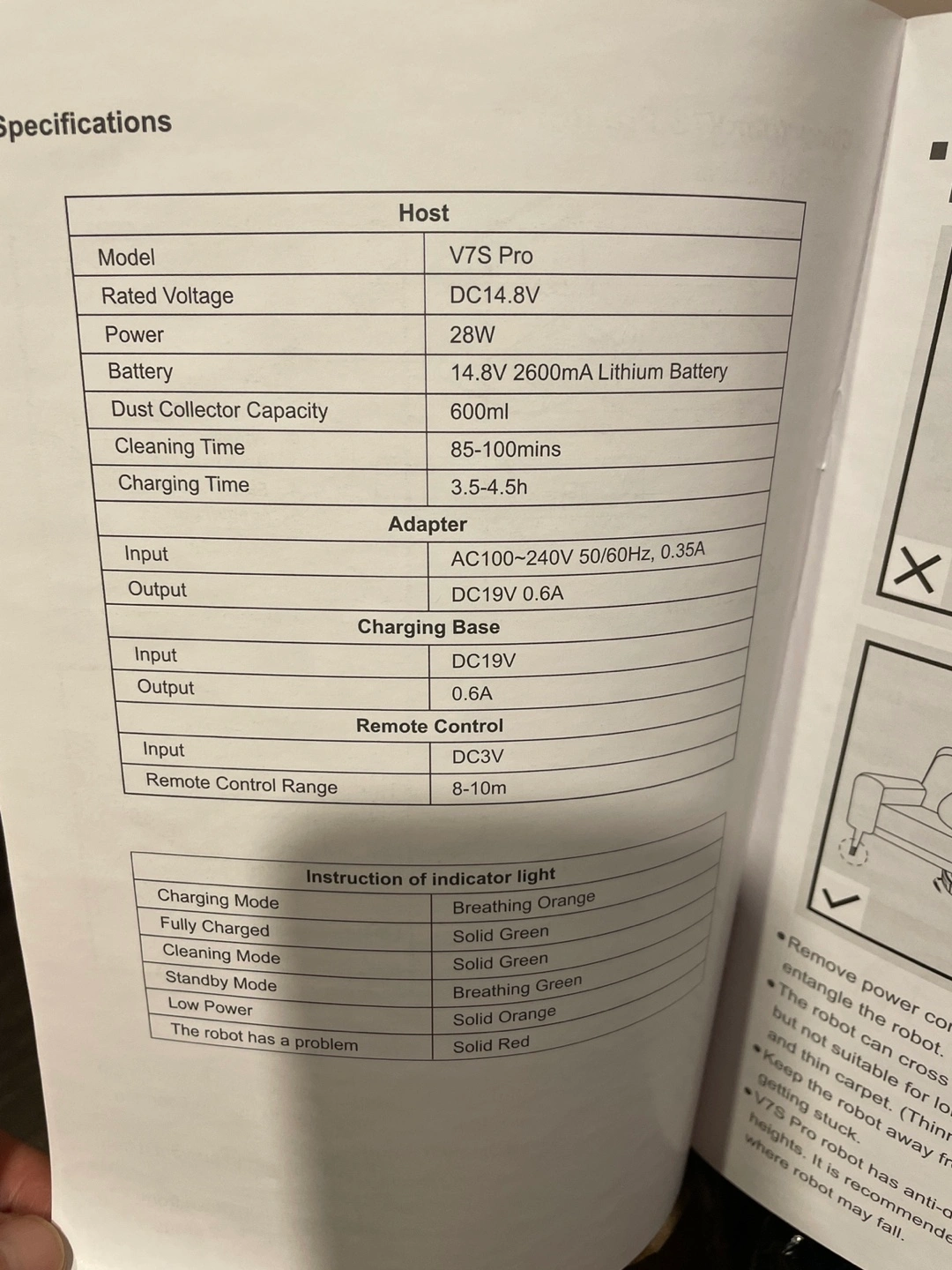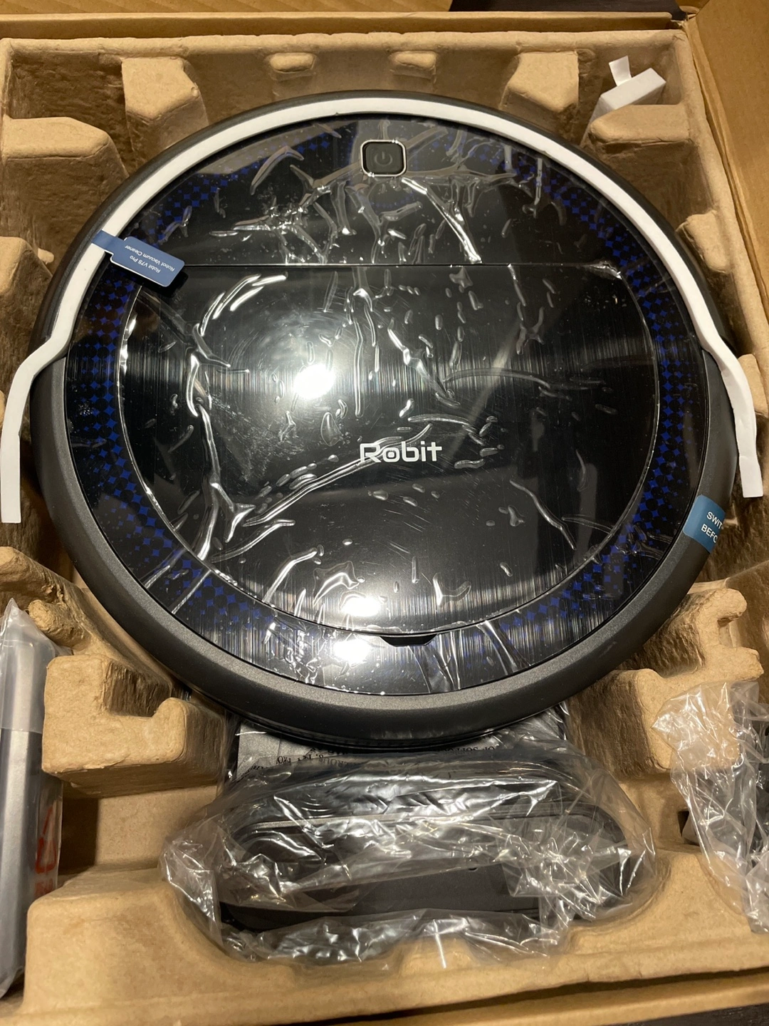 Brand new, never used Robit V7S Pro robot vacuum. Includes charging base, remote, adapter, brushes, and filter. Complete package contents. Powerful suction, long battery life.