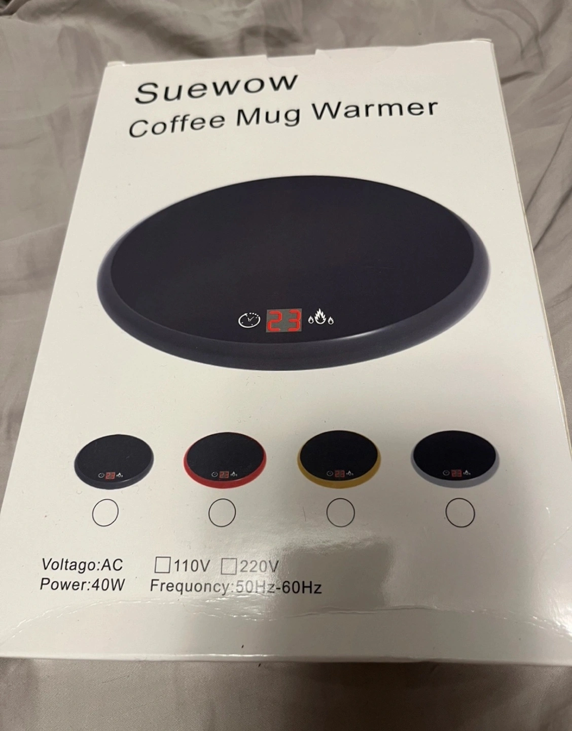 1000+Black Suewow brand mug warmer with digital display. Includes a power cord. New in box (box is not in perfect condition). Retails for $20+ Available for pickup in Markland Wood.