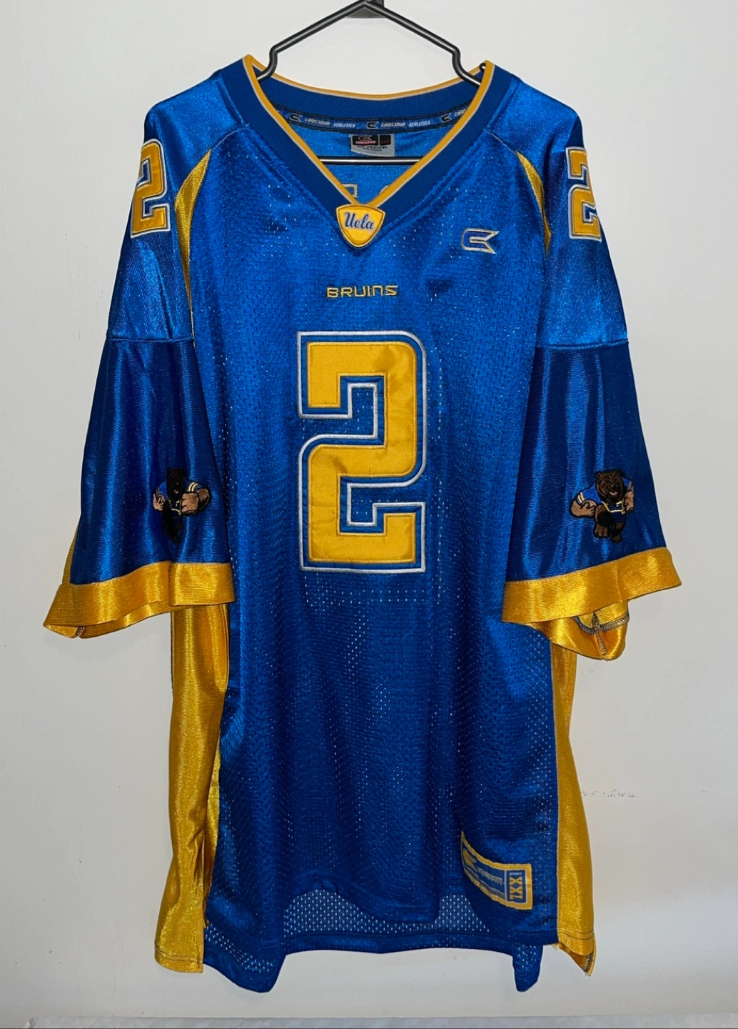 Colosseum Athletics UCLA Bruins football jersey. Size XXL. Blue and gold. Features number 2 and embroidered bear logos.