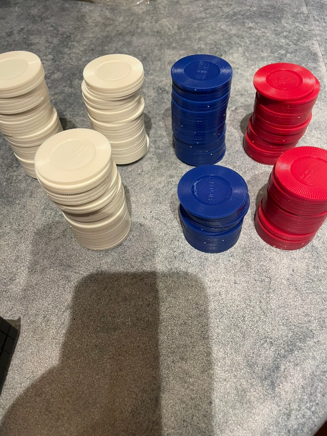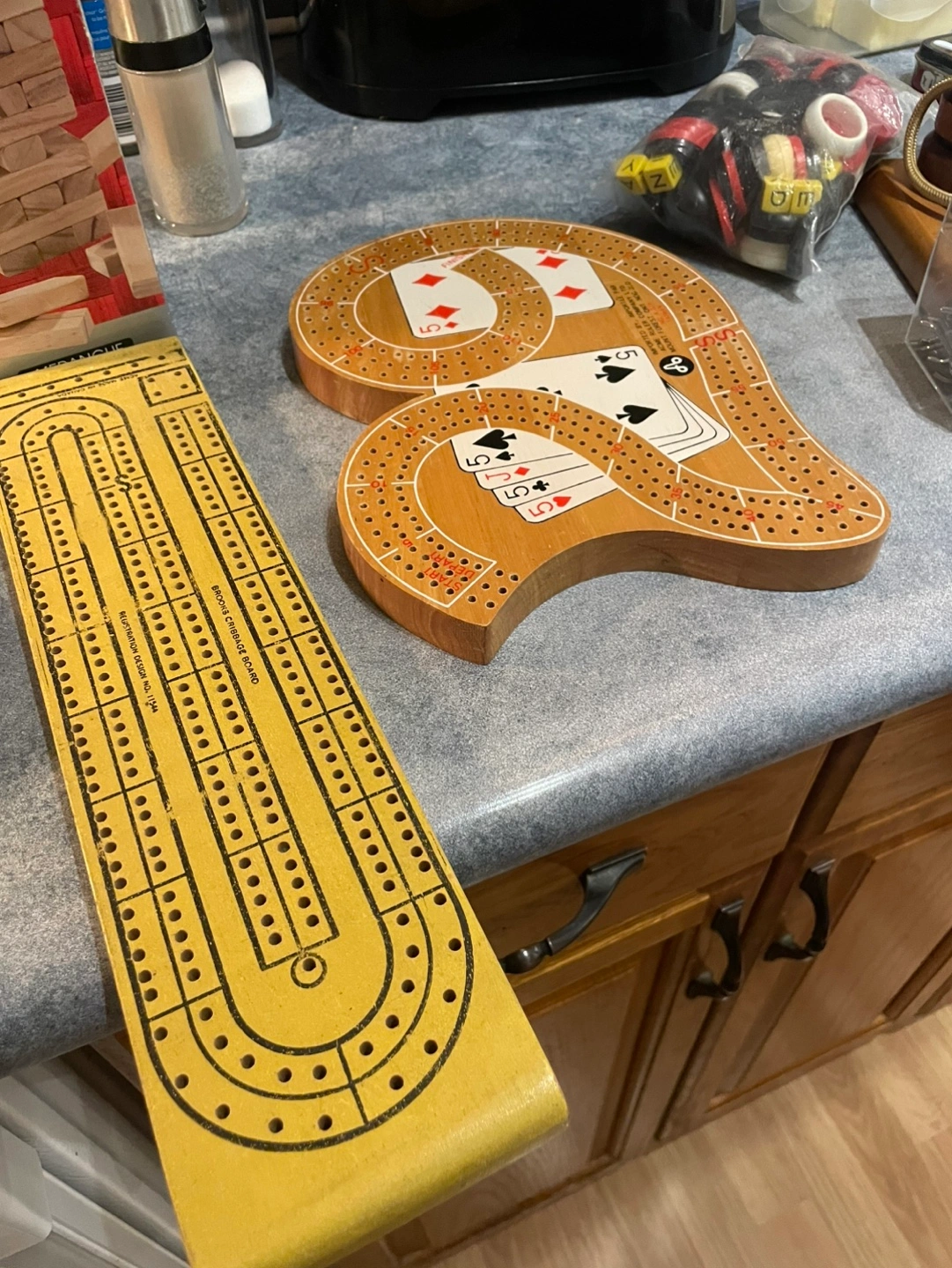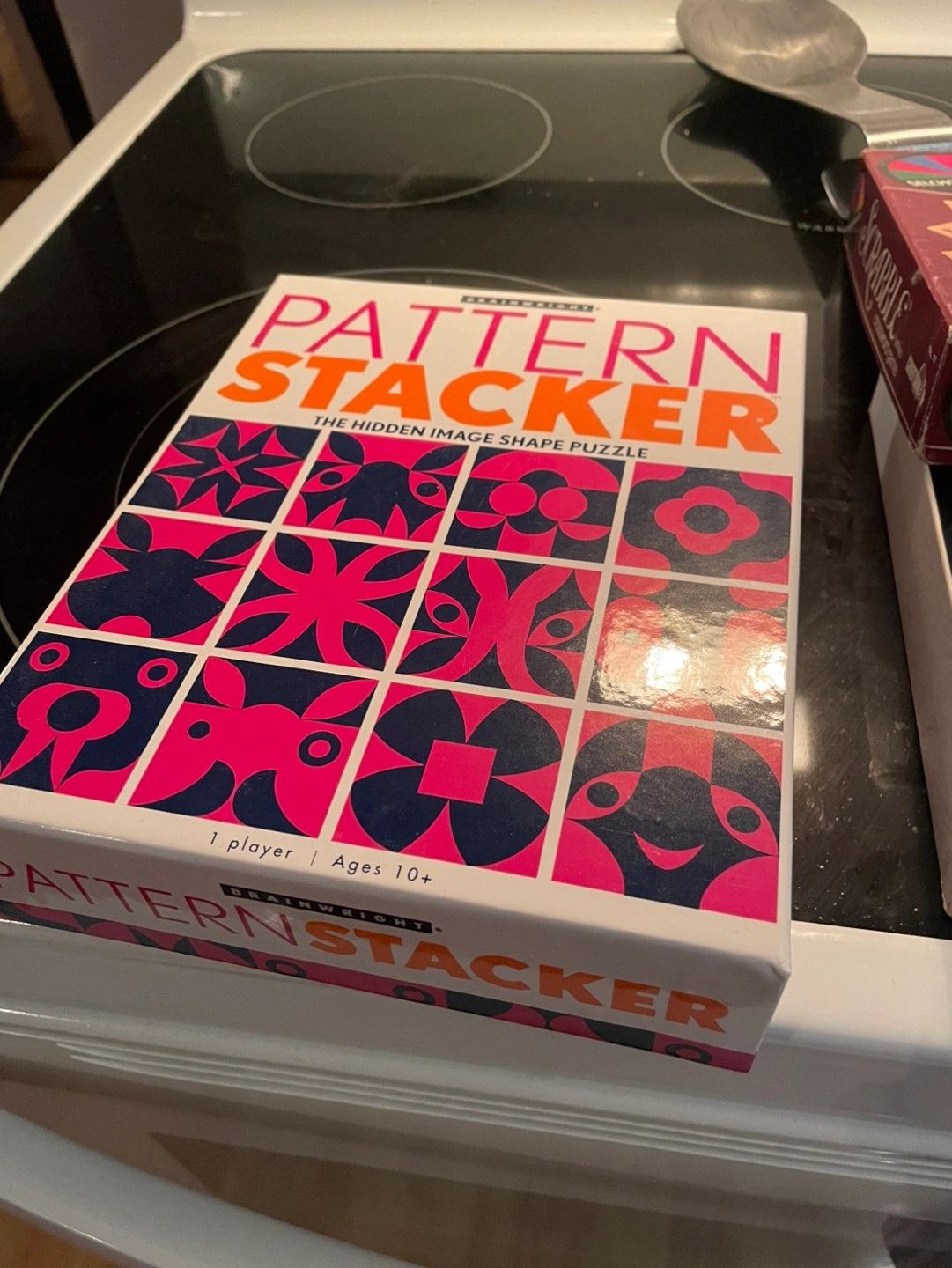 406Poker chips, retro scrabble, cribbage boards, puzzles, travel set, something called “Bowling Dice” (never opened), and a cool visual puzzle game called Pattern Stacker. Official Scrabble dictionary included.