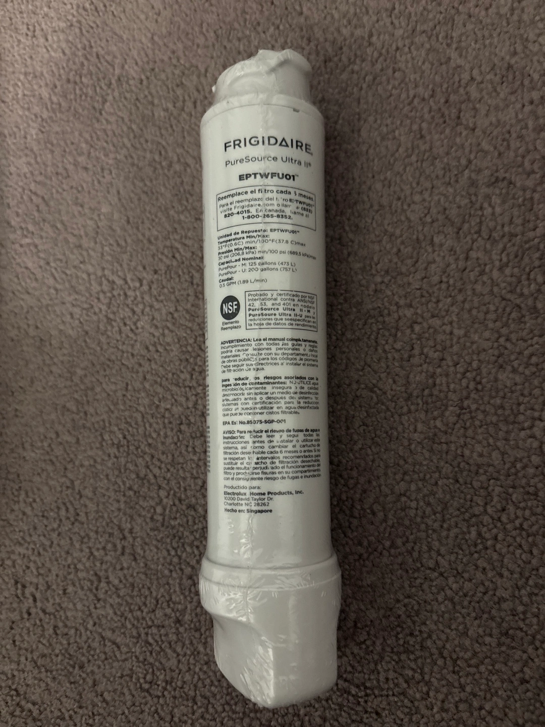 Frigidaire PureSource Ultra II water filter replacement. Replaces filter every 3 months. Model EPTWFU01. Includes instructions.