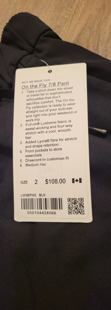 Lululemon On the Fly 7/8 Pant - Size 2 - Black