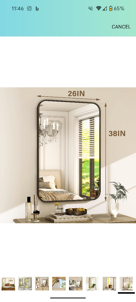 Large mirror. Black frame. Easy installation. Measurements: 26x38