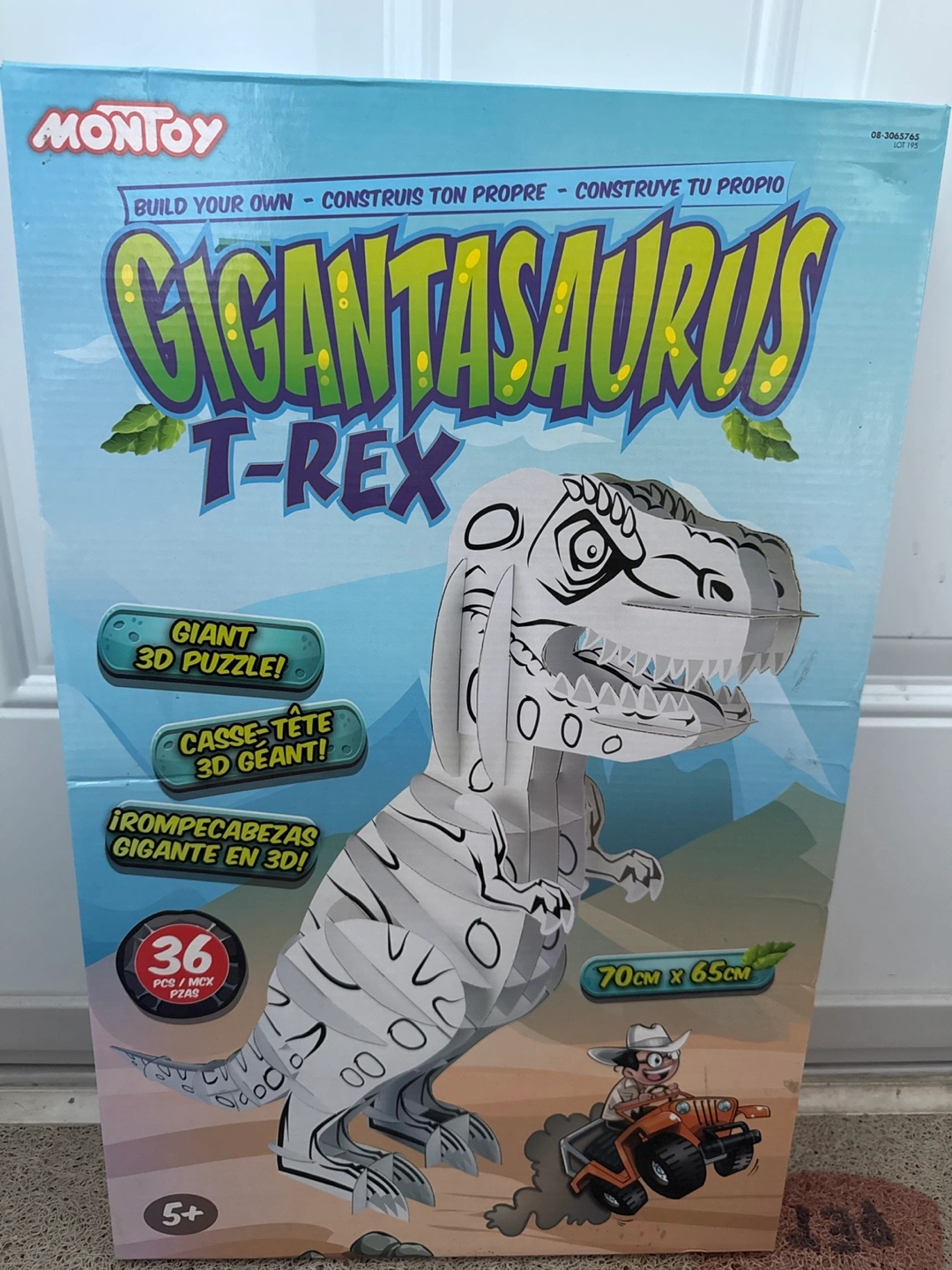 Colour and build your own gigantic t-Rex. Great for kids! Never opened, brand new.