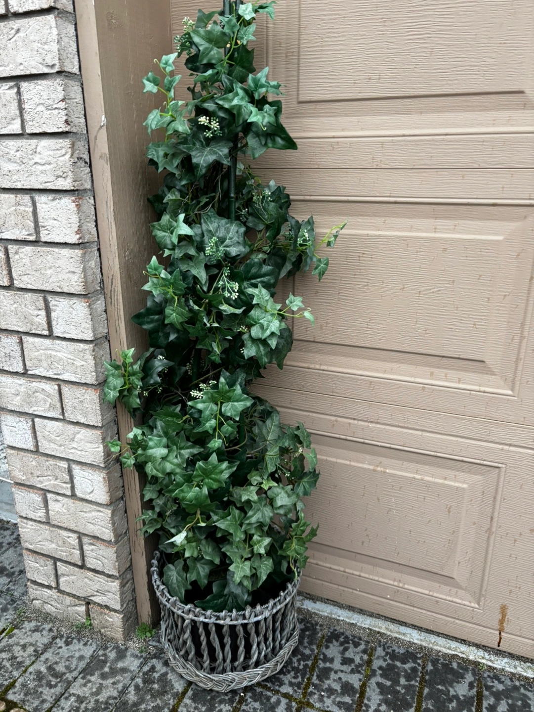 33Artificial ivy plant in a grey woven basket. Looks realistic. Great for indoor or outdoor décor.