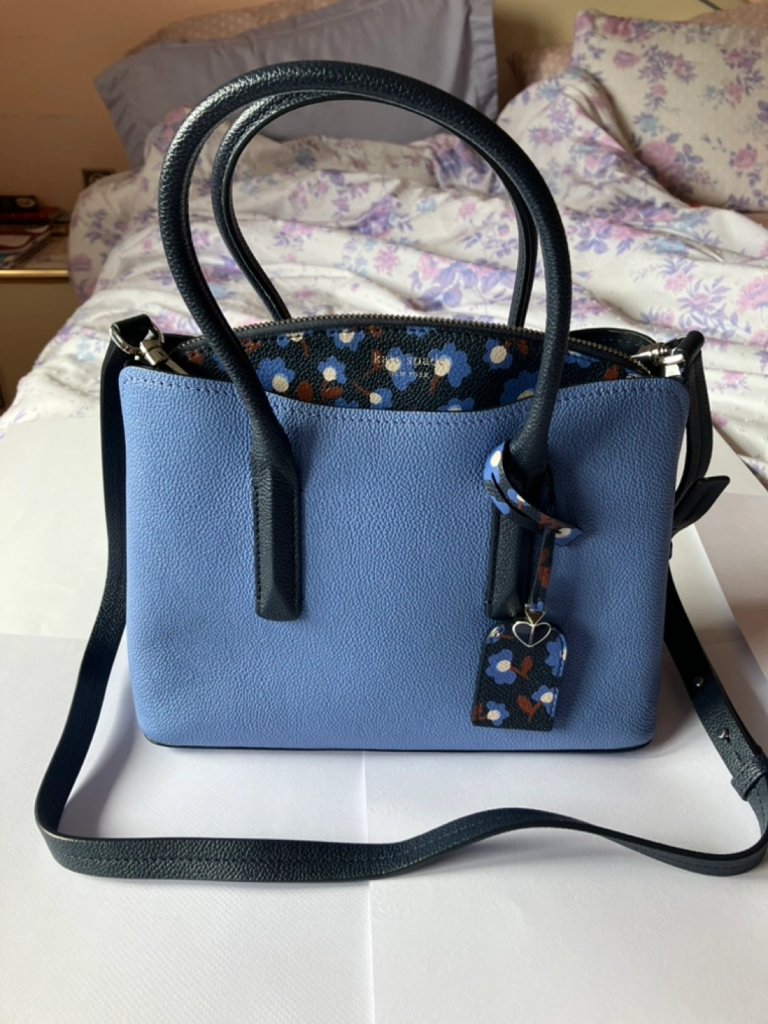 Lightly used Kate Spade small blue and floral satchel. Has handles and comes with attachable navy blue strap. 📍Meetups in south Markham / north Scarborough area - cash only. From smoke free household. 👜Helping my mom clean out her closet and purse collection!