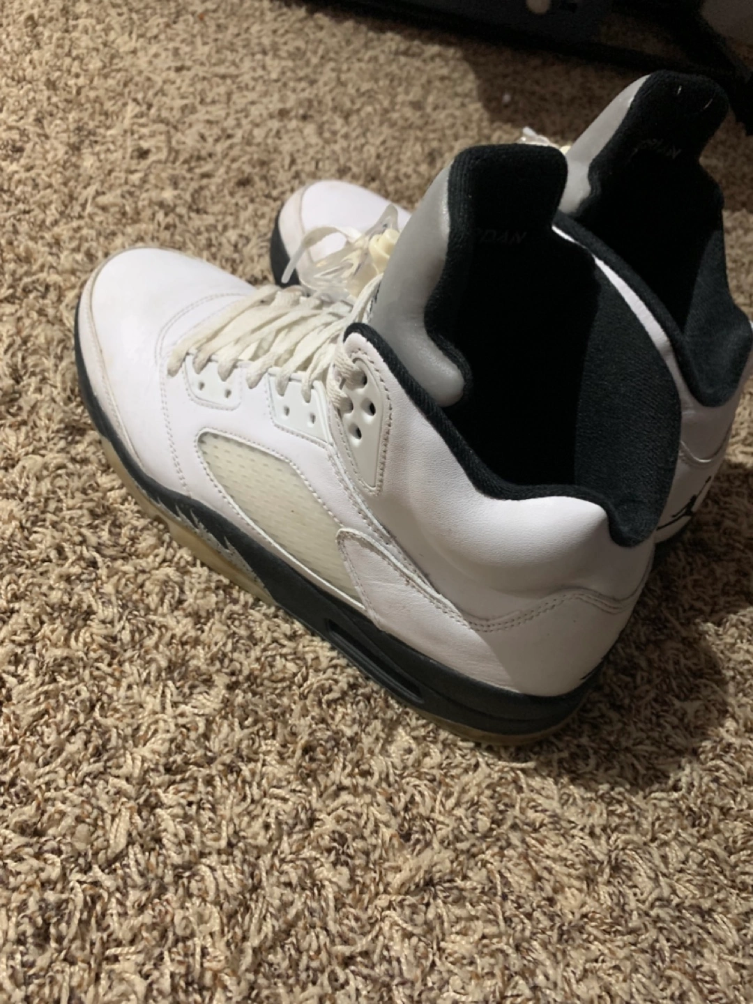 Buy & SellAir Jordan 5 Retro 'Metallic Silver'Air Jordan 5 Retro 'Metallic Silver'$90Men's Air Jordan 5 Retro sneakers. White leather upper, black accents, and icy translucent outsole. Pre-owned, some wearBrandAir Jordan1 chats·0 favorites·33 viewsSELLERJaydenPotter Greens100 reviewsWHERE TO MEETCheck Location