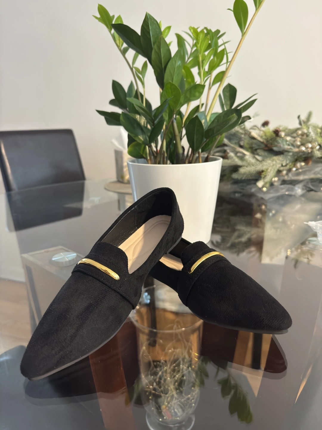 Buy & SellBlack Suede Pointed-Toe Flats with Gold AccentBlack Suede Pointed-Toe Flats with Gold Accent$20Pair of women's black suede flats. Pointed-toe design. Features a gold-toned accent. Size 10.ConditionNewSize10WHERE TO MEETOsborneView MapSELLEROlgaRiver Osborne200 reviews0 chats·1 favorites·12 views