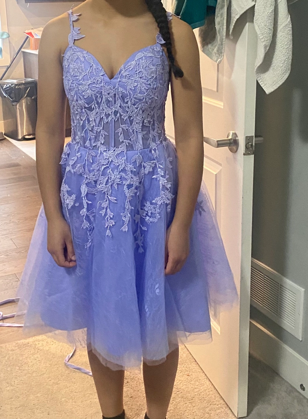 Brand new, tags still attached. Beautiful lavender tulle dress. Features delicate lace detailing. Sweetheart neckline and A-line silhouette with corset back. Perfect for grad, special occasion, or party size 4