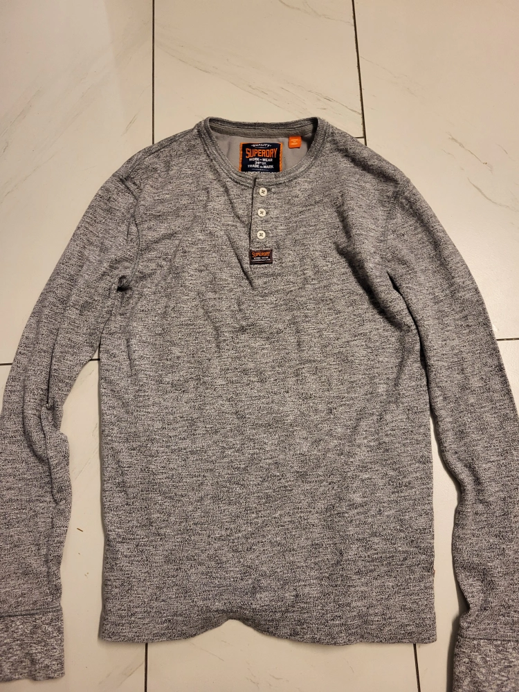 Grey henley long-sleeve shirt. Medium size. Superdry branding. Good condition.