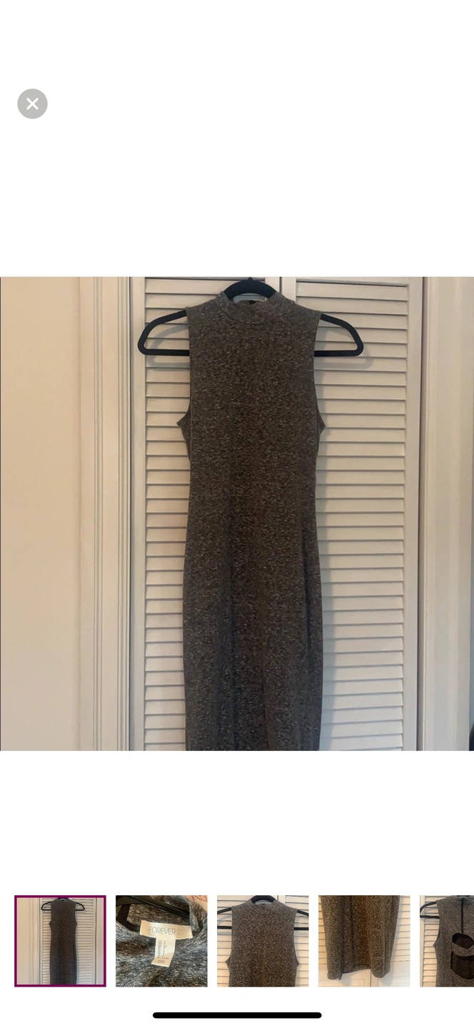 Grey high neck forever 21 dress with back cut out and zipper at the back. Great condition barely worn. Cotton and polyester blend