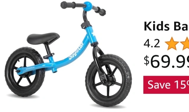 44Pre-owned JoyStar balance bike. Blue frame, black wheels and seat. Good for developing balance and coordination skills.