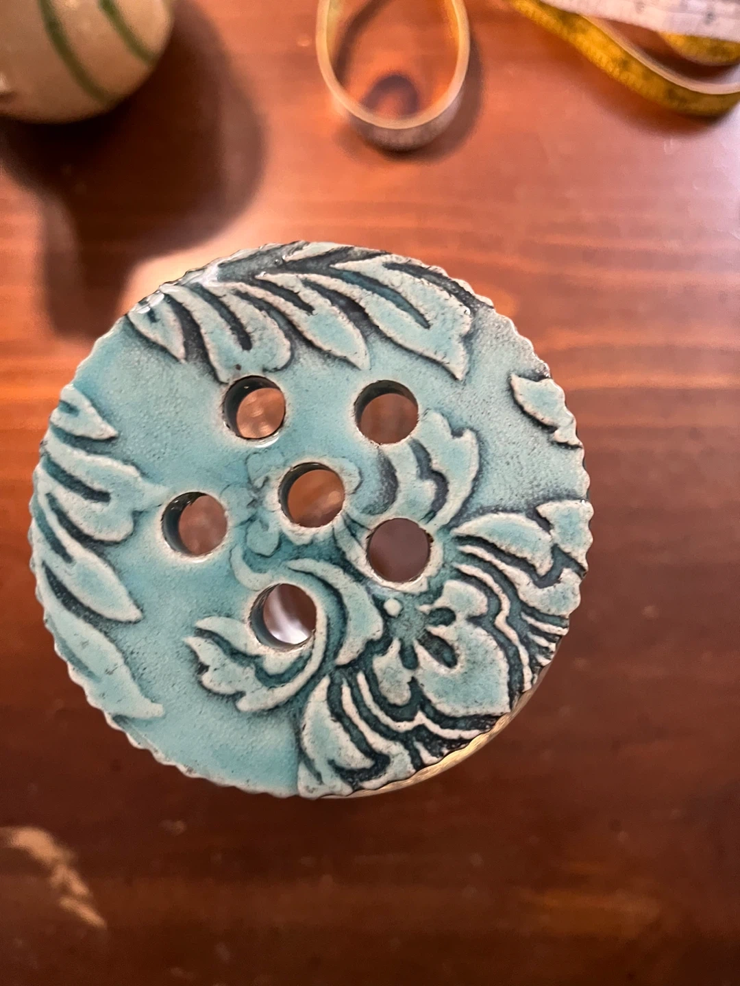 Glass vase with ceramic flower frog lid