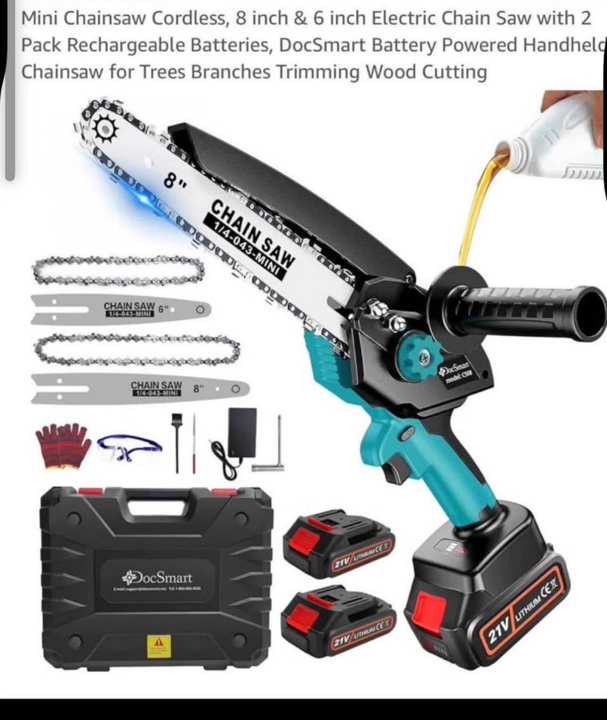 DocSmart 2-in-1 Cordless Chainsaw(8-inch &6-inch)