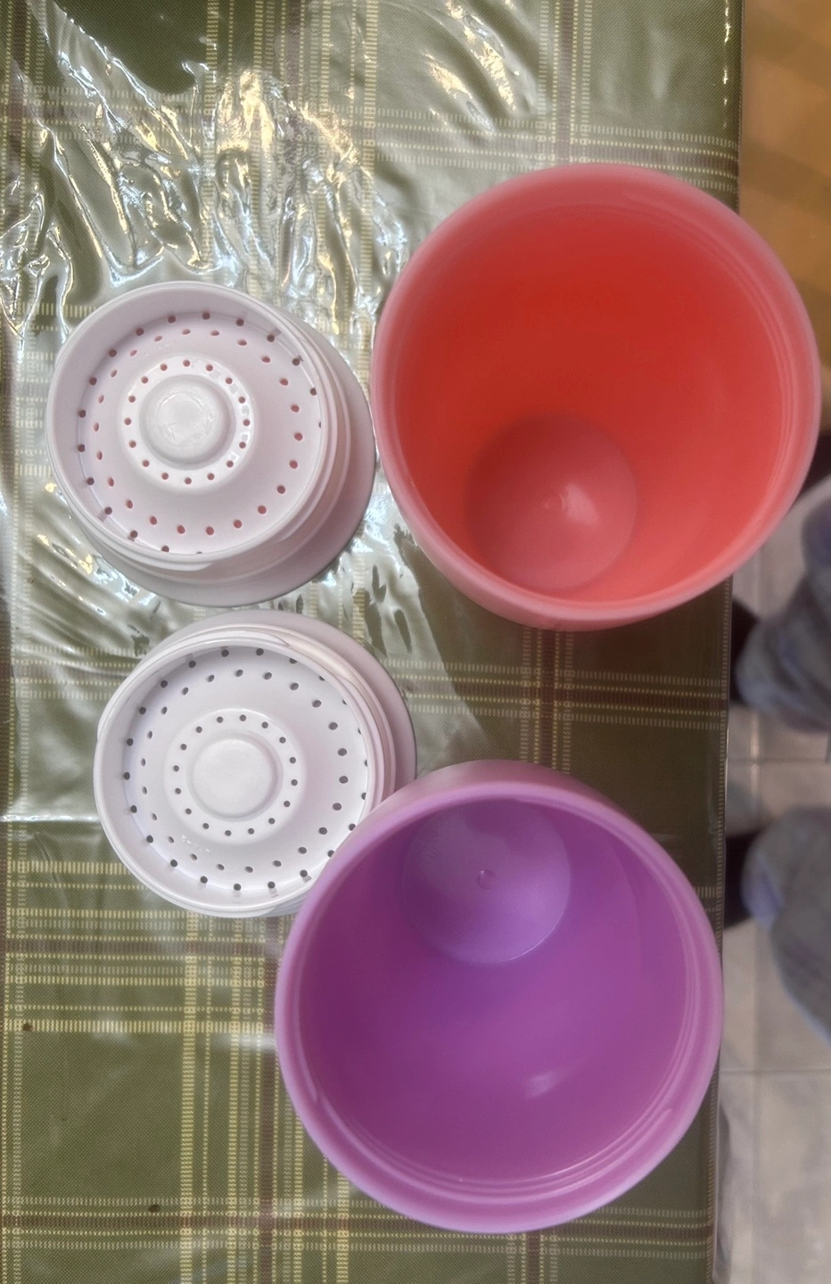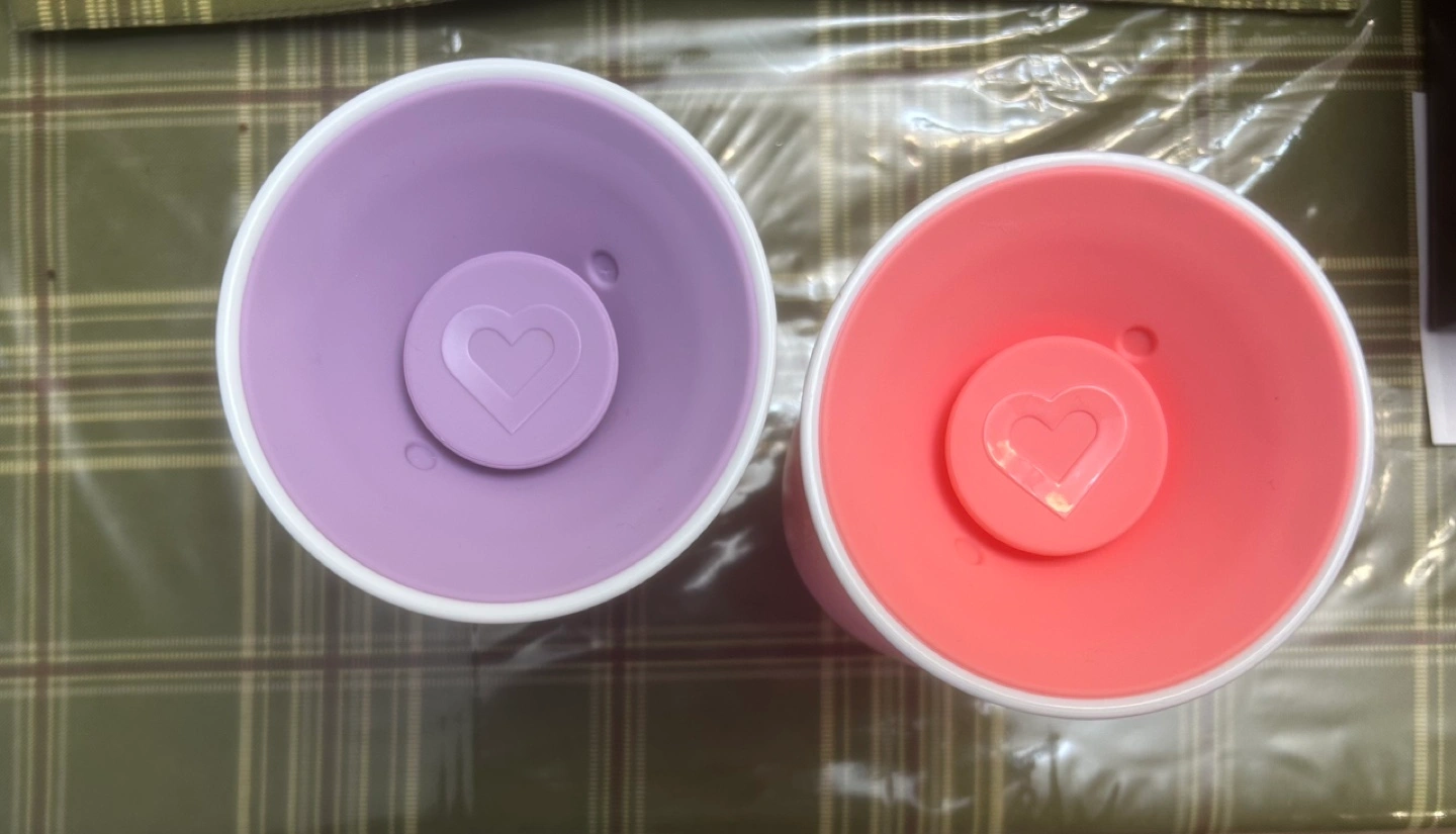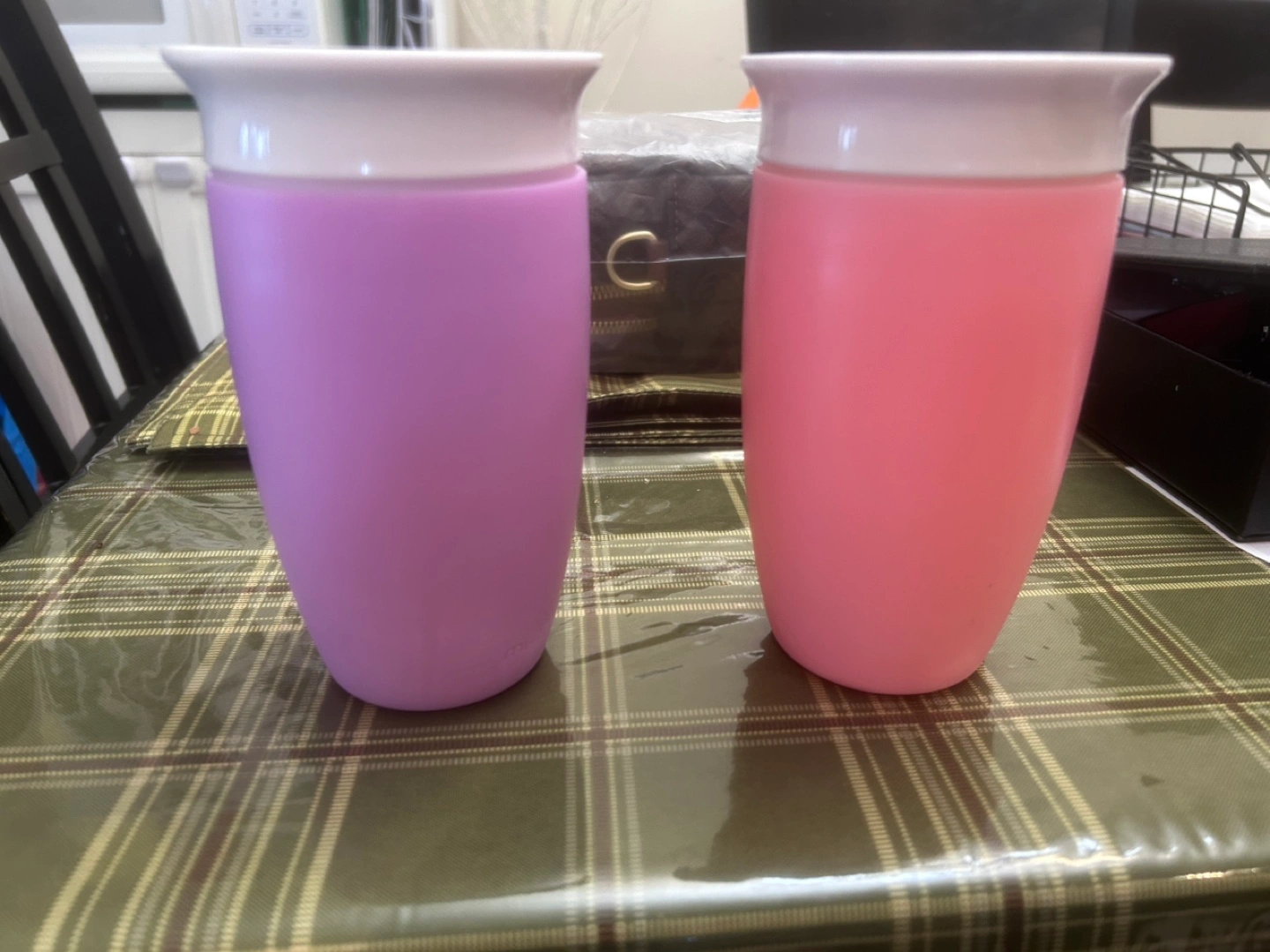 Two adorable Munchkin sippy cups. Perfect for little ones. Includes silicone sleeves, straws, and handles. Pink and purple colours. Brand New condition.
