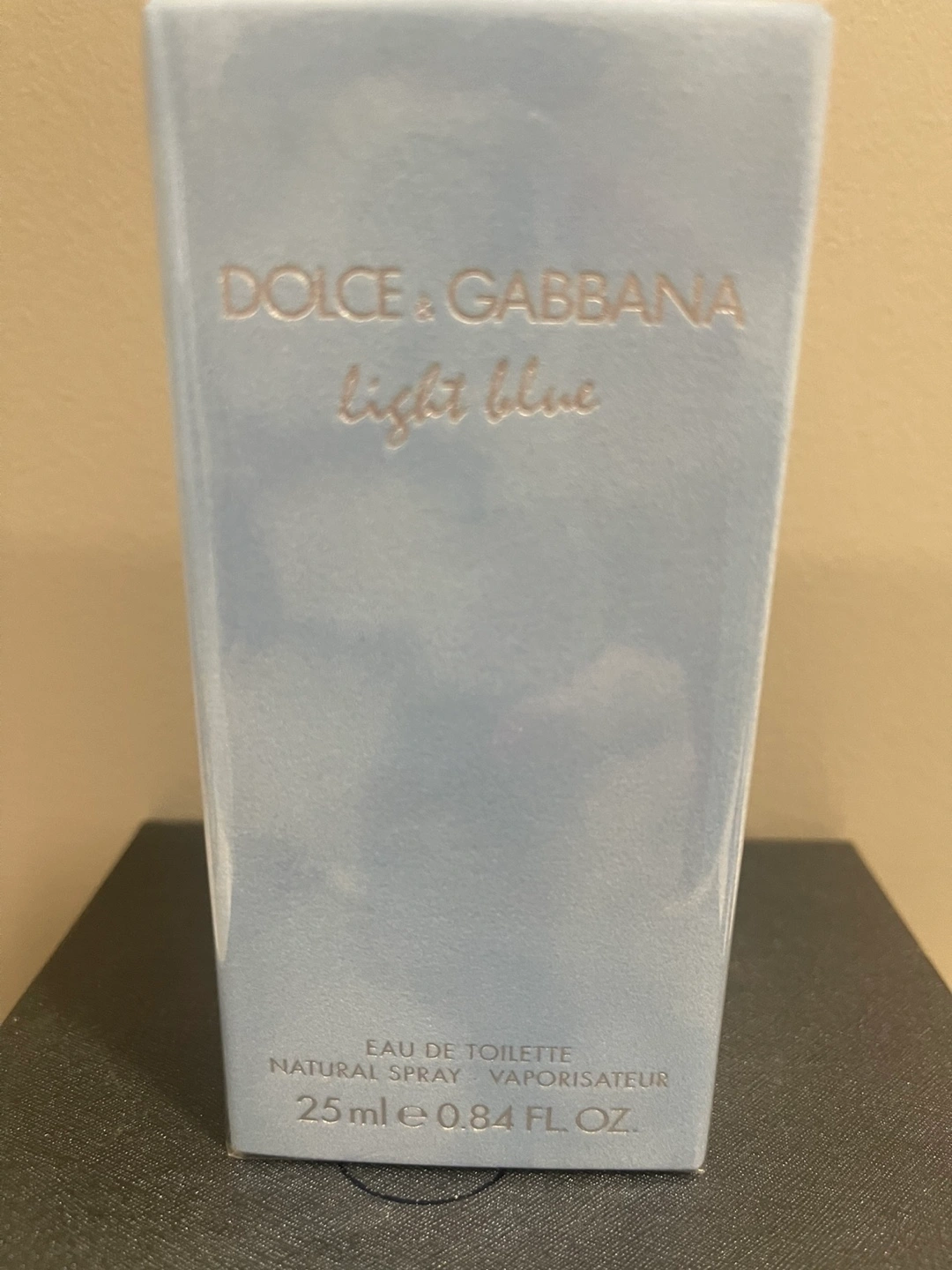33Dolce & Gabbana Light Blue Eau De Toilette. A delightful soft very feminine fragrance in a 25ml travel size. Perfect for travel or your purse. Comes in it’s sealed unopened box.
