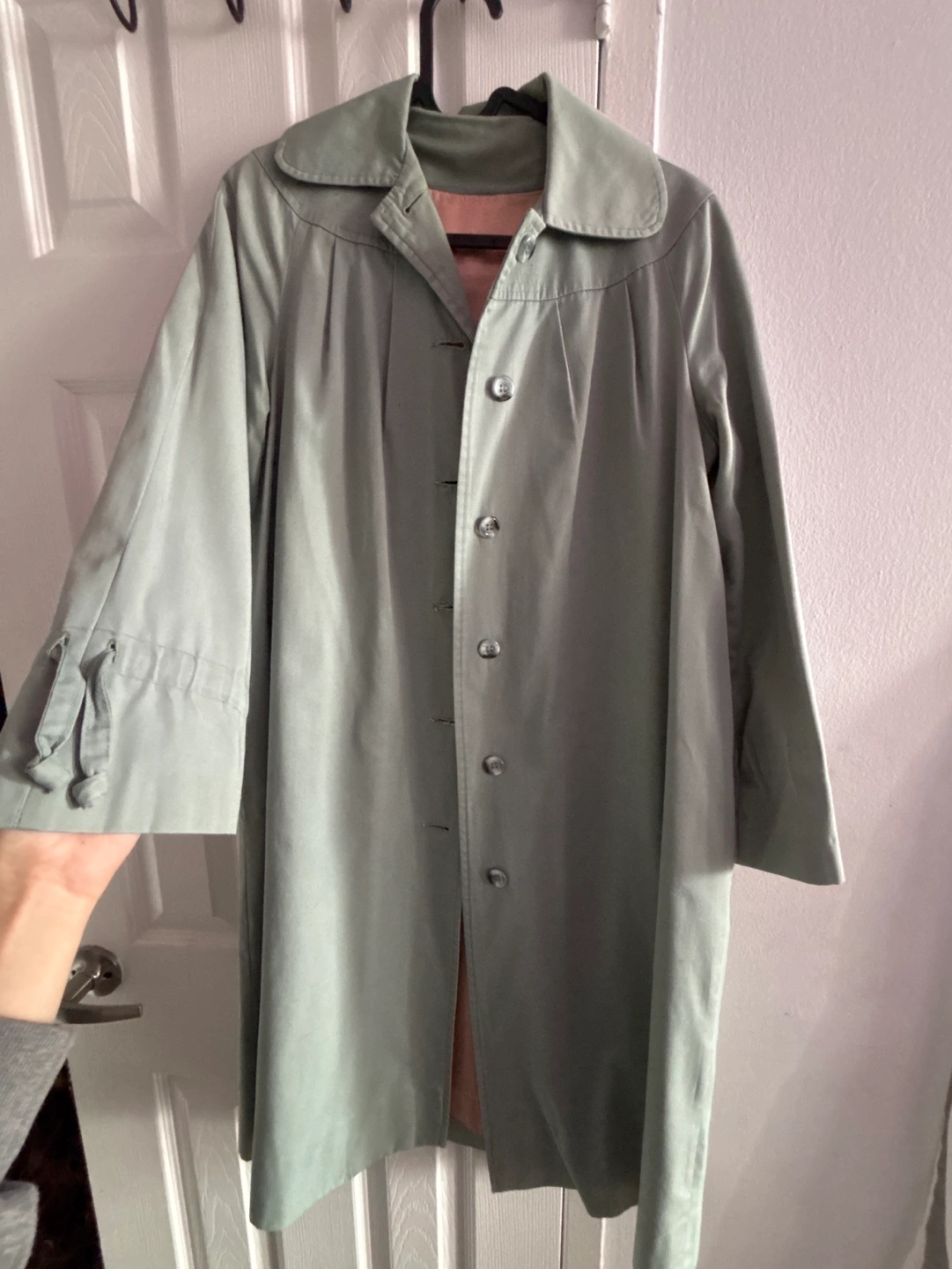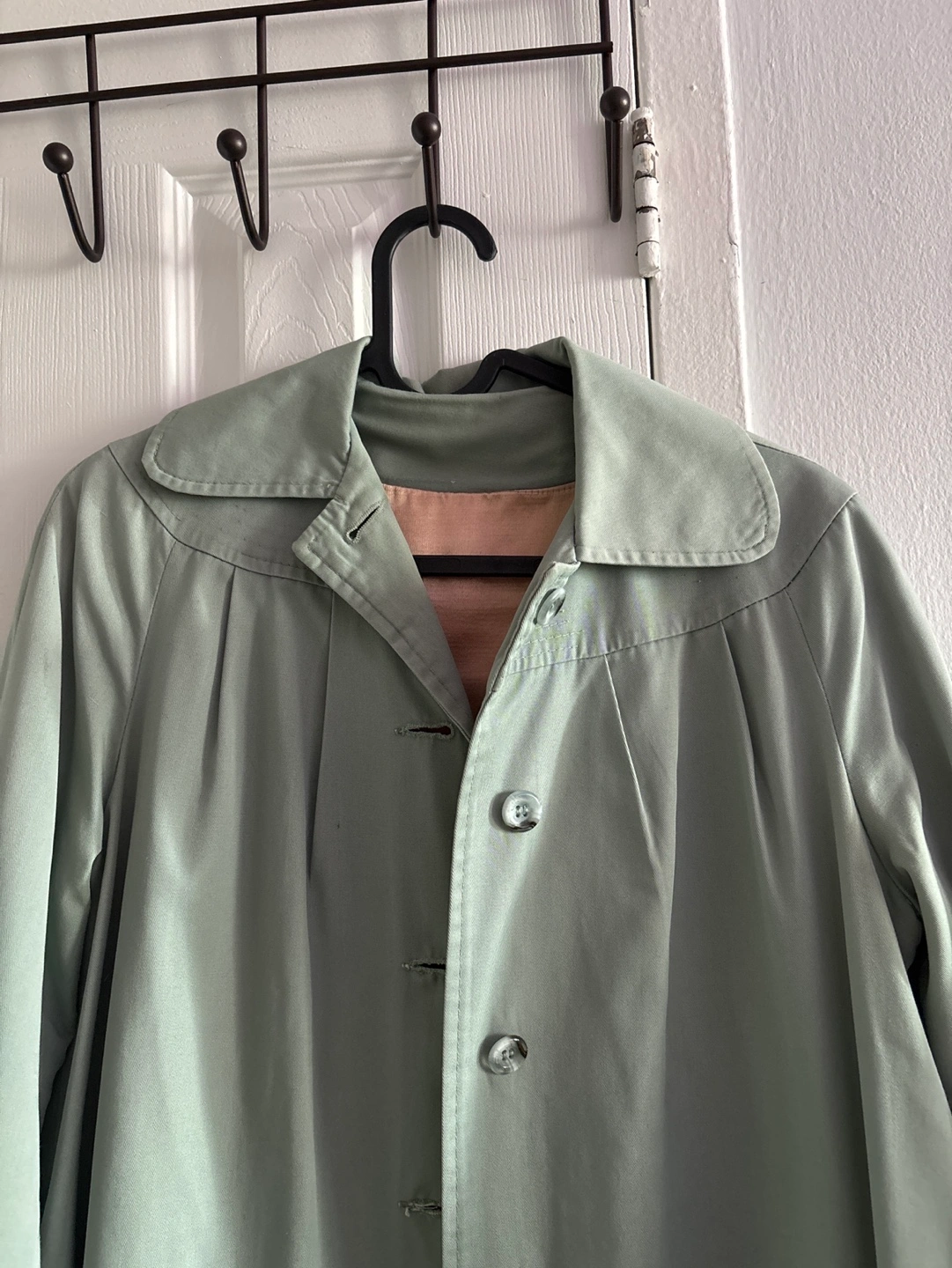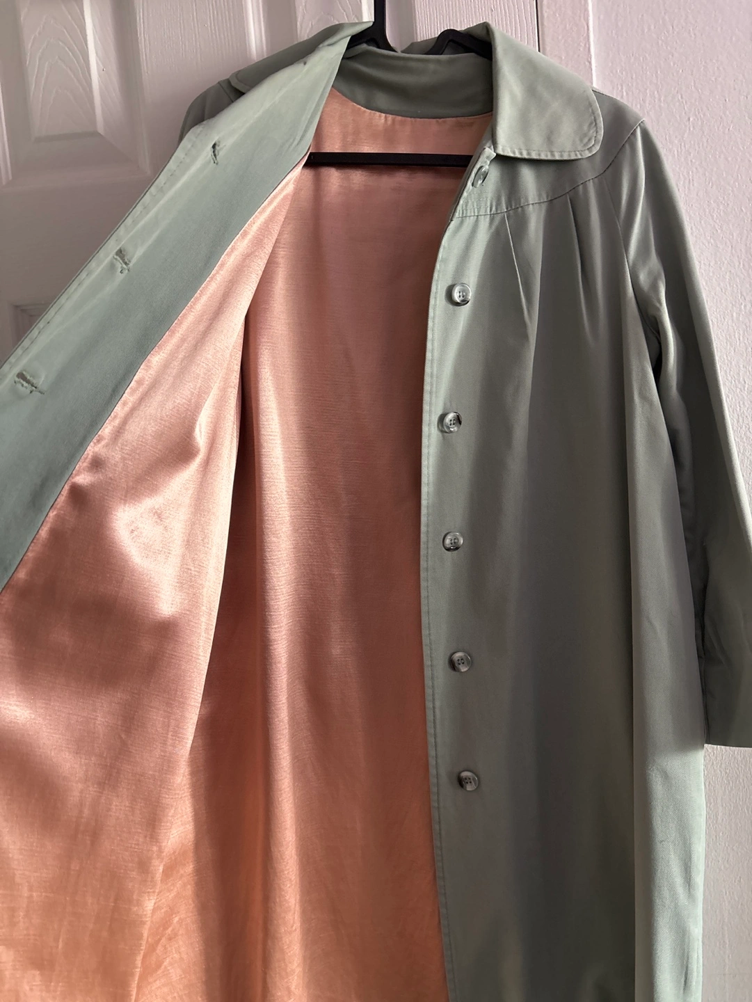 Vintage Sage Green Dress Coat with Pink Satin Lining