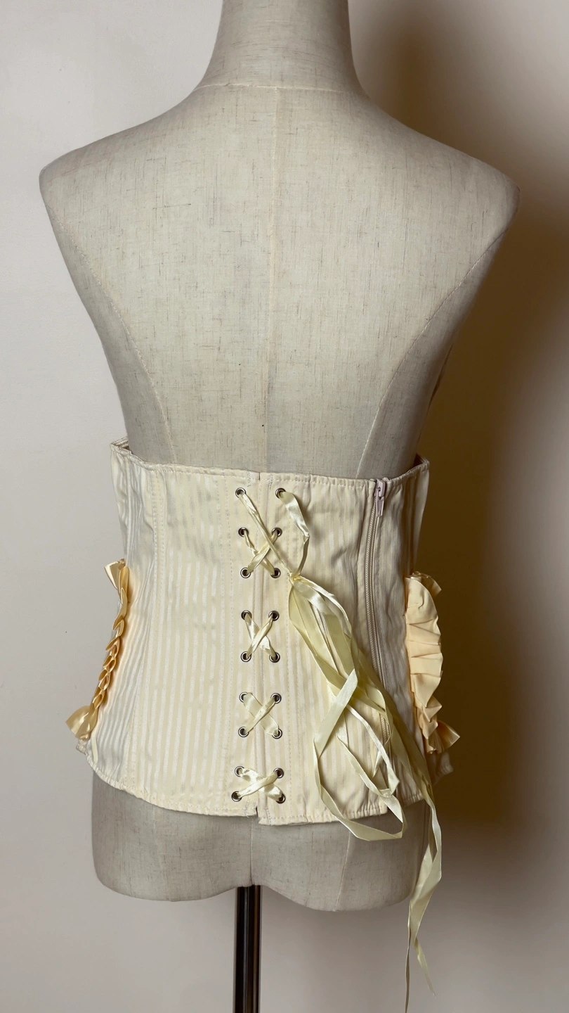 Cream coloured striped corset with ruffles