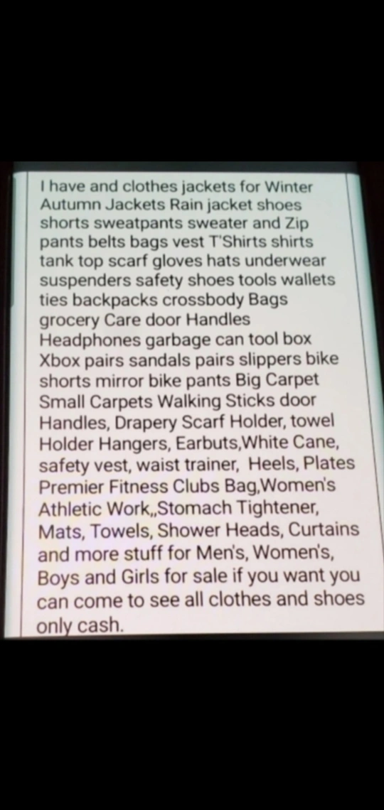 I have more Sweater and Zip all size different price different colors and different Brand if you want you can come to see all clothes and jackets only cash.